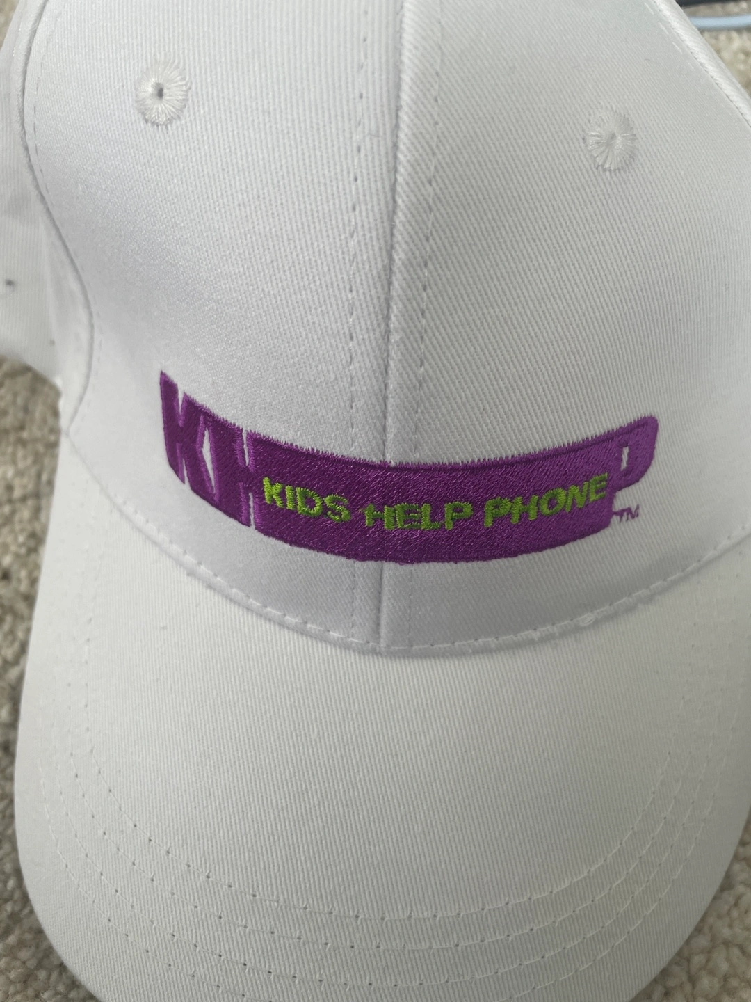 607One for $5 Two for $7 2 White cotton baseball caps Features Kids Help Phone logo embroidered on the front. Adjustable back.