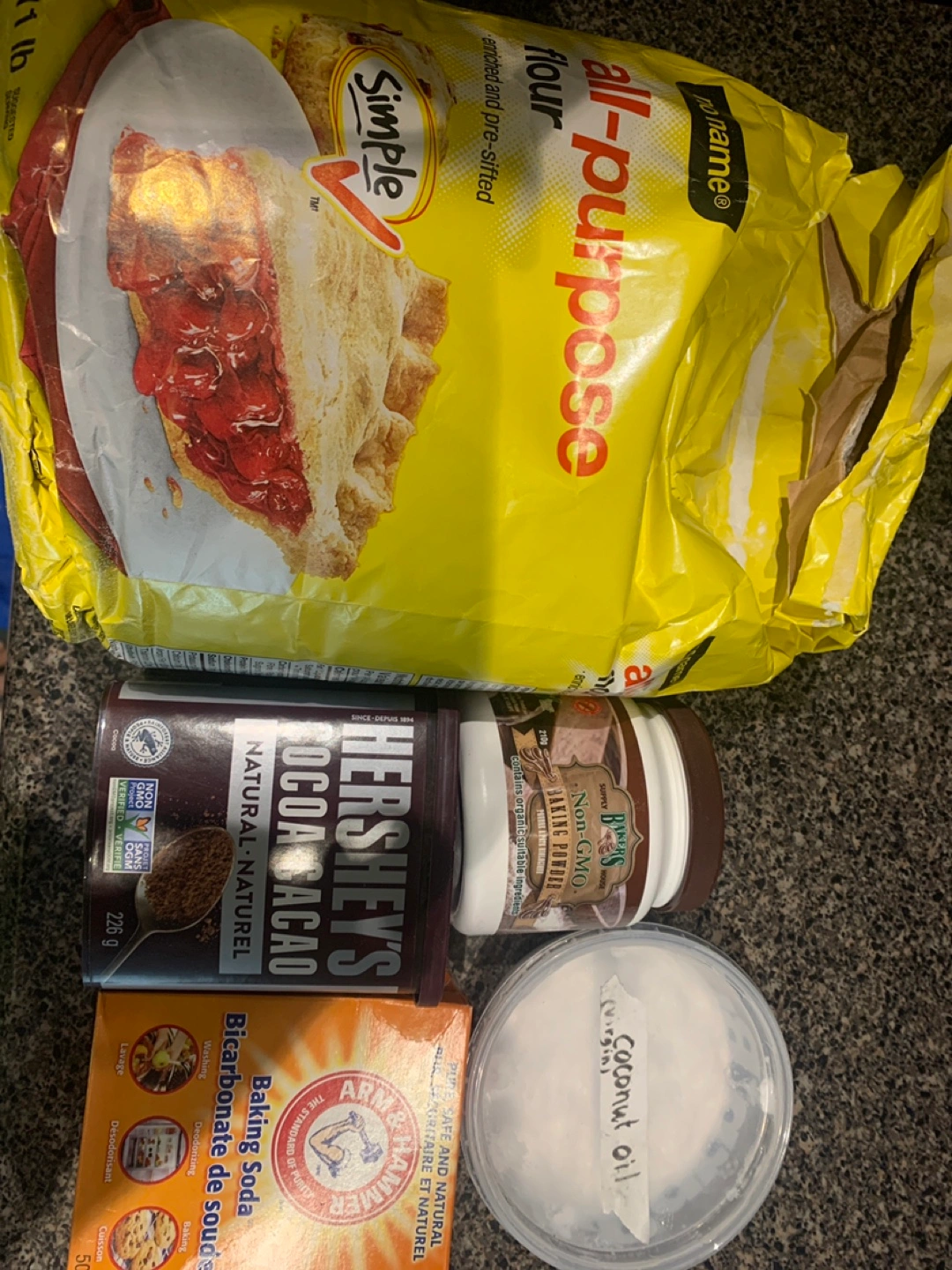293Bulk baking ingredients. Includes flour, cocoa powder, baking powder, baking soda, and coconut oil. Perfect for baking projects. Pick up only **move out sale - see other items in profile**