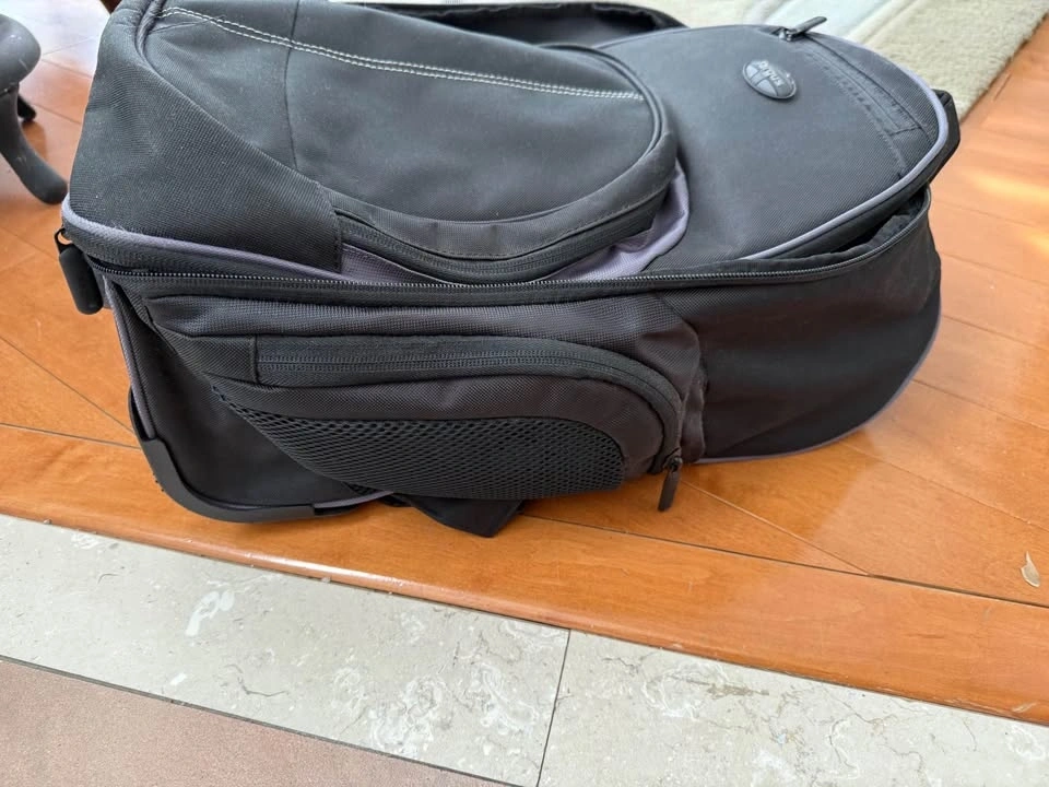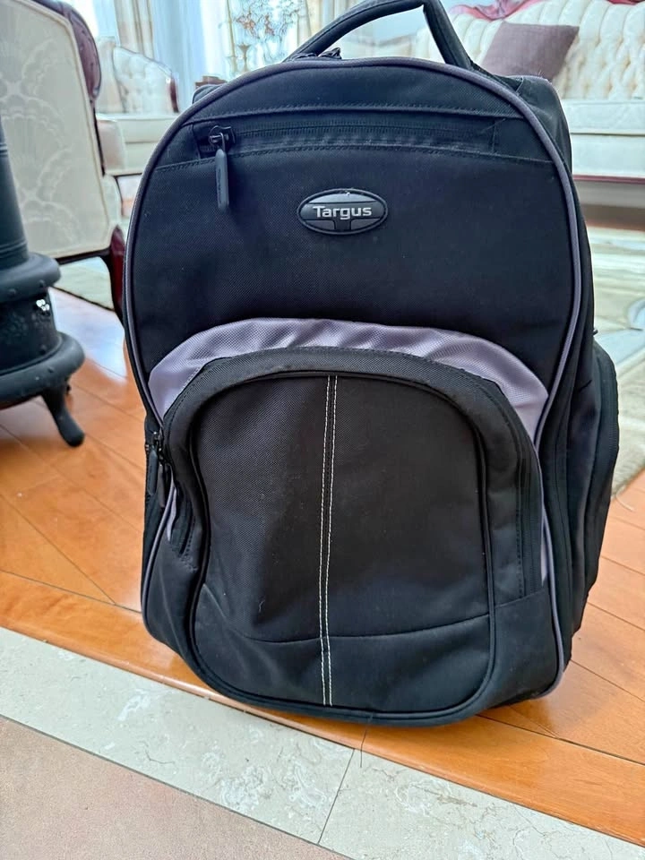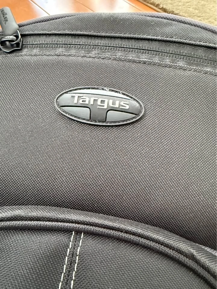 Spacious Targus backpack. Black with cool grey accents. Has lots of pockets for all your stuff. Inside has straps to keep things secure. Great for school, work, or travel.