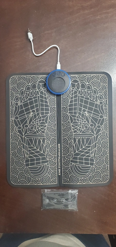 Electric foot massager mat. Features 8 modes and 19 intensity levels. Includes remote control. Charging cable included. Great for muscle relaxation and stimulation. Delivery is available on little bit of gas money.