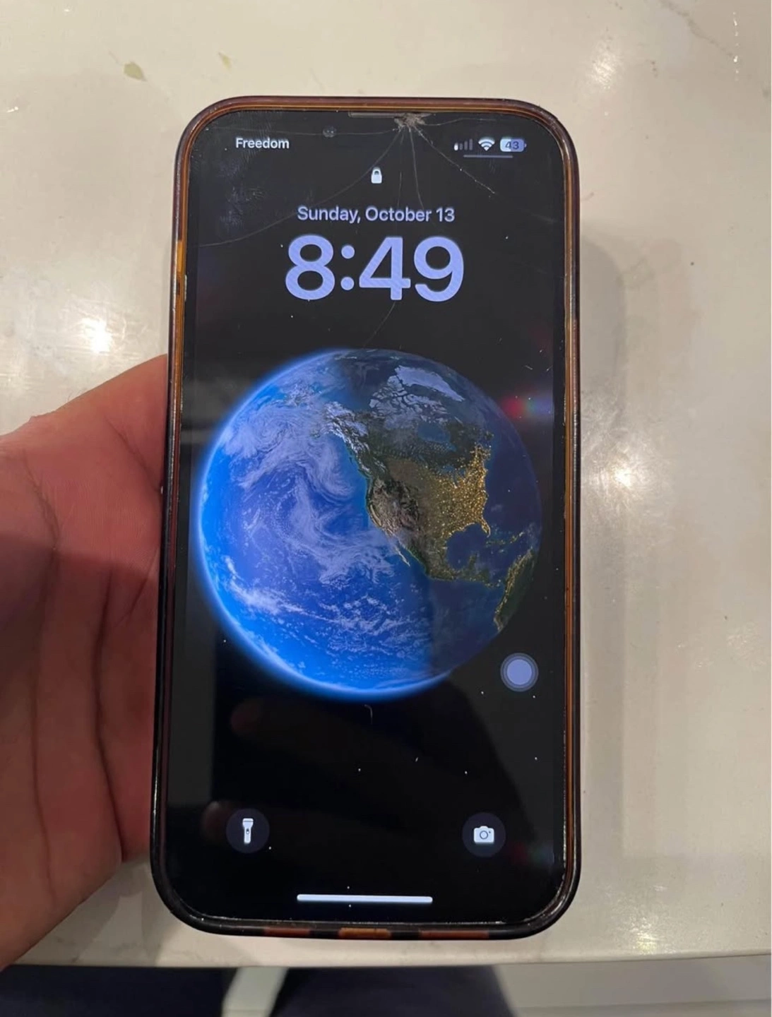 Used iPhone 13 Pro Max 256 GB. Sierra Blue colour. Front screen cracked alittle. Fully functional. Includes phone , case and box.