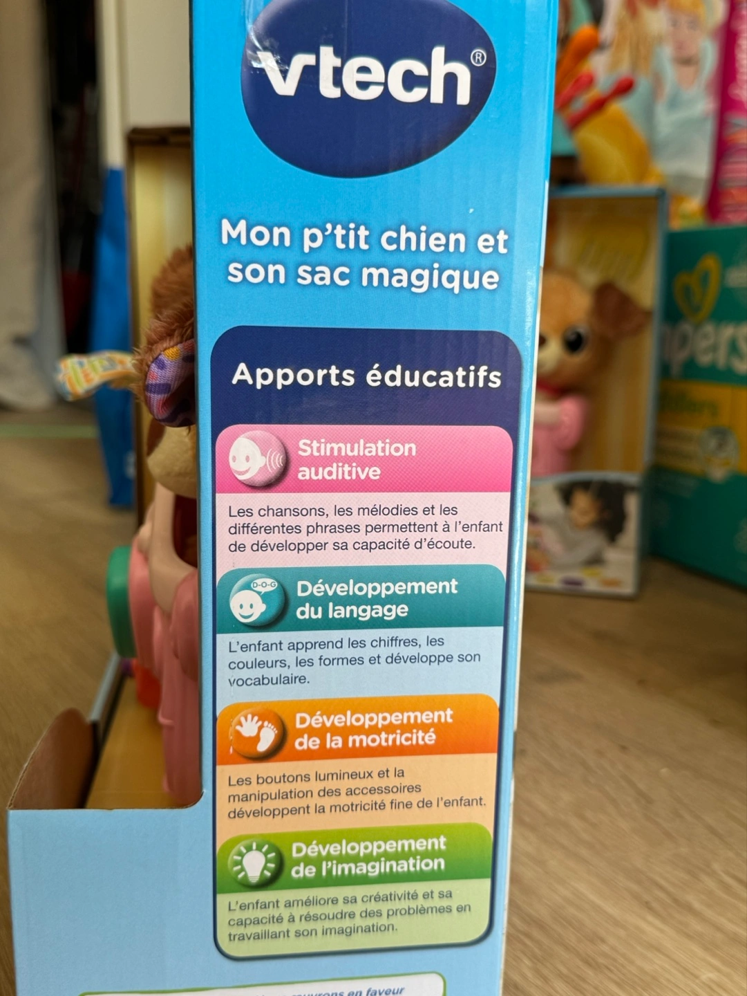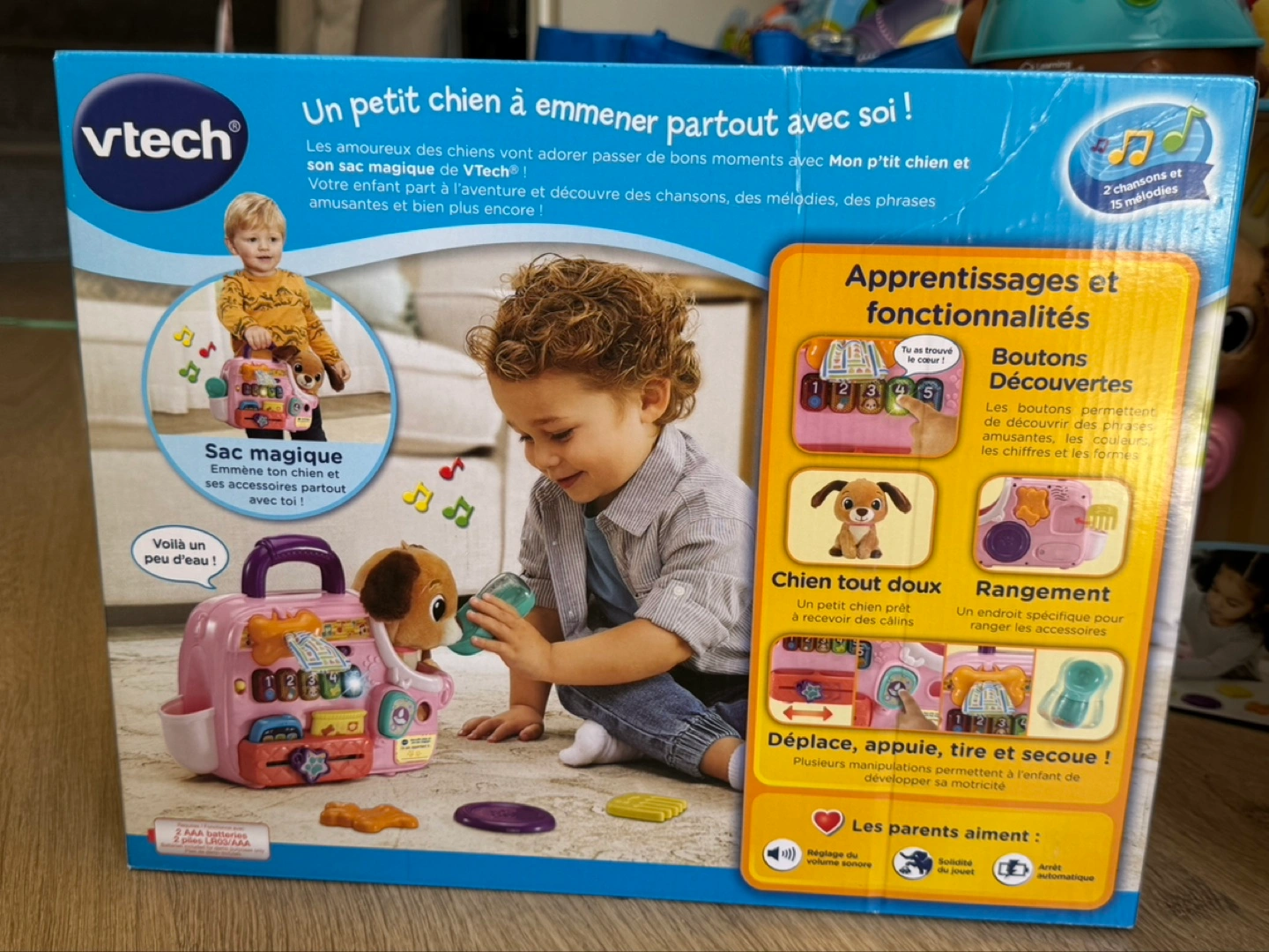 - Jam-packed puppy carrier includes buttons that introduce colors, numbers, shapes and pet phrases to help boost language skills