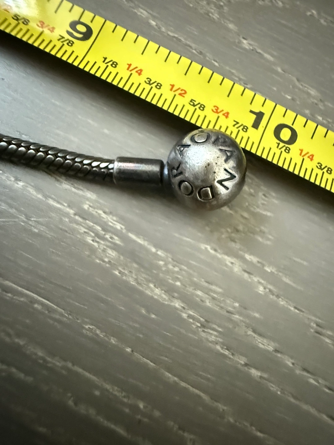 Pandora Sterling Silver snake chain necklace. Measures approximately 20 inches long. Features a classic Pandora clasp.