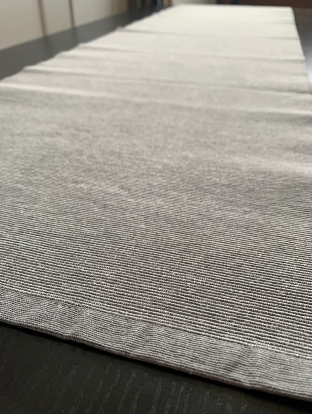 •Textured long grey table runner.