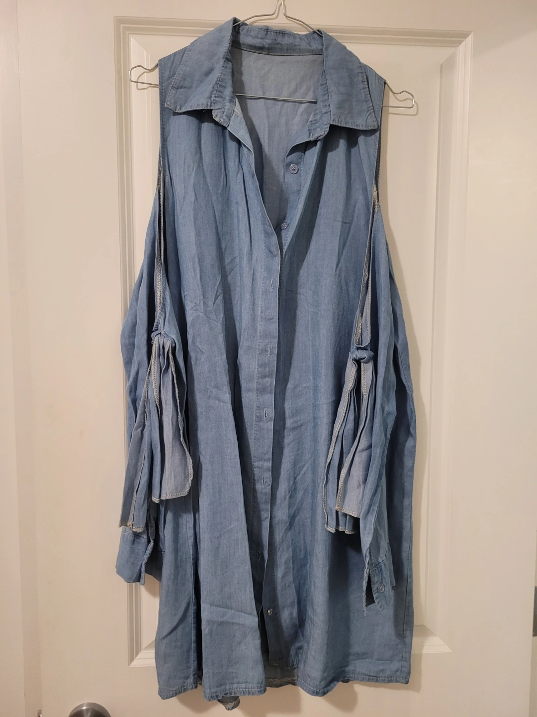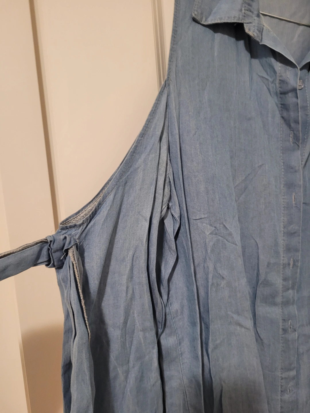Women's Size M Cold Shoulder Denim Shirt Dress