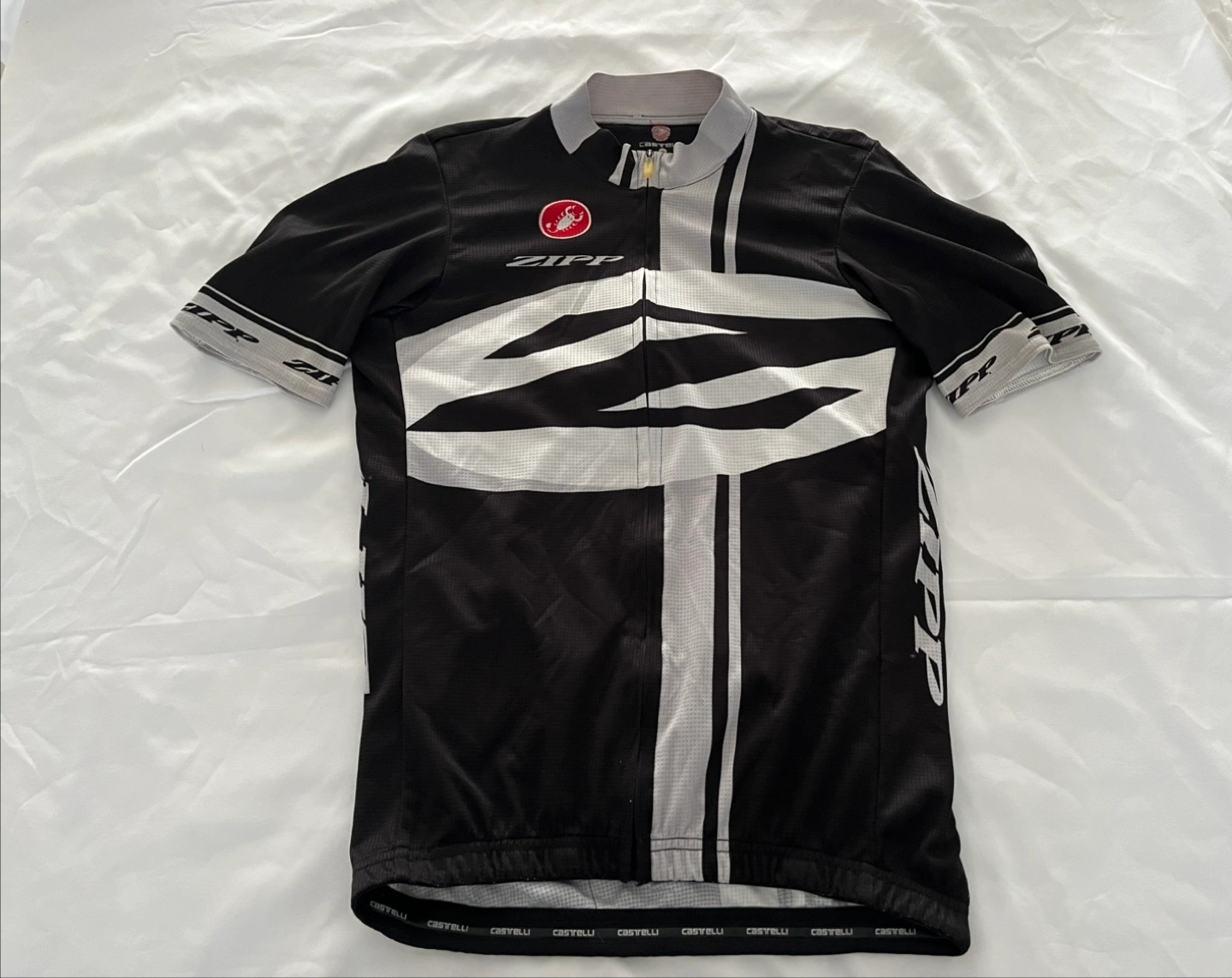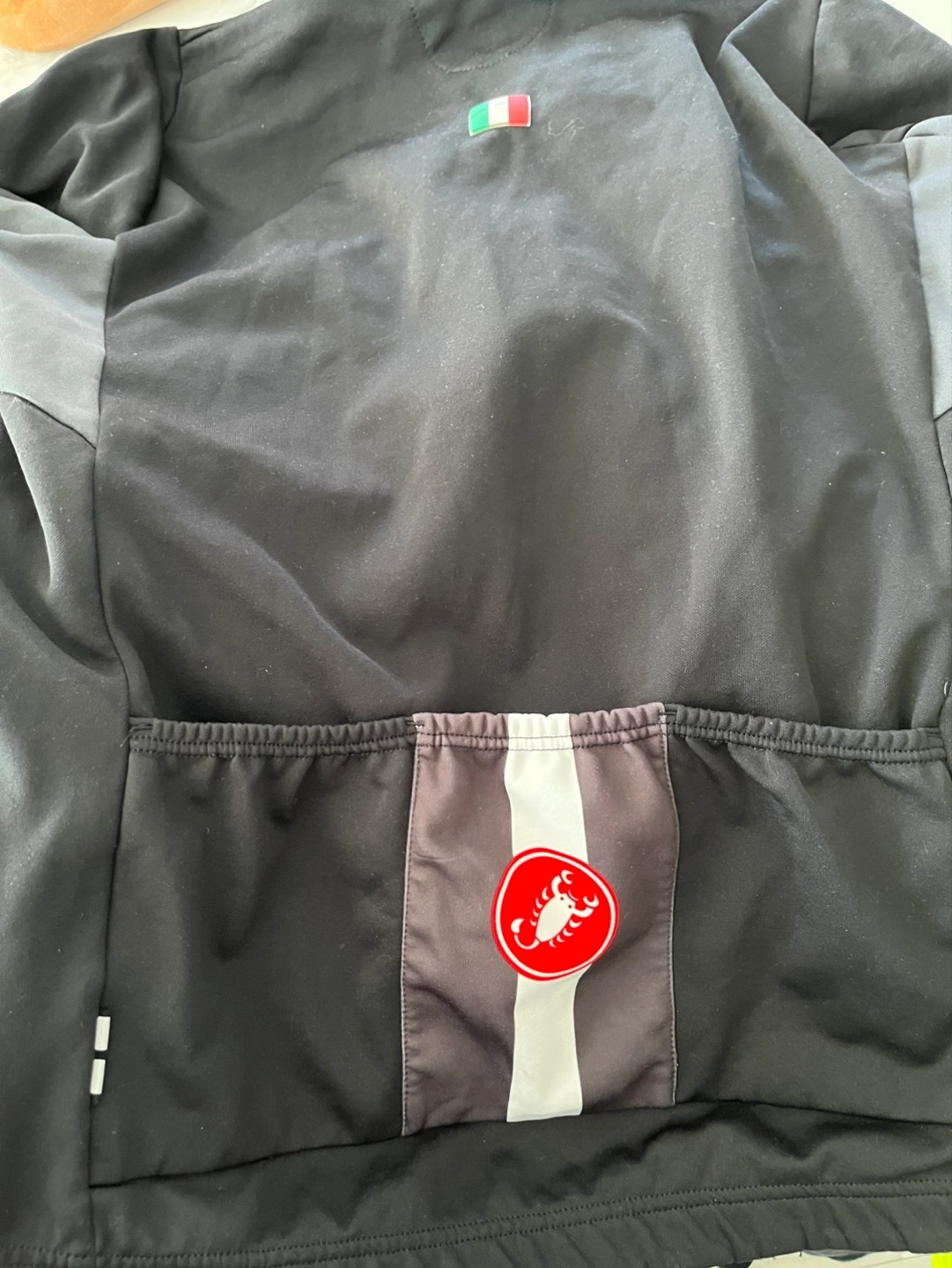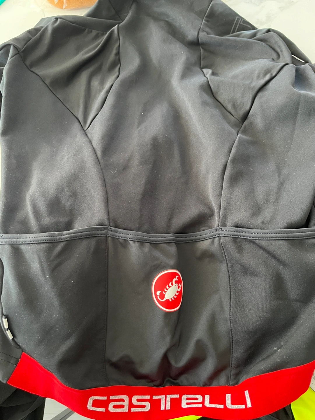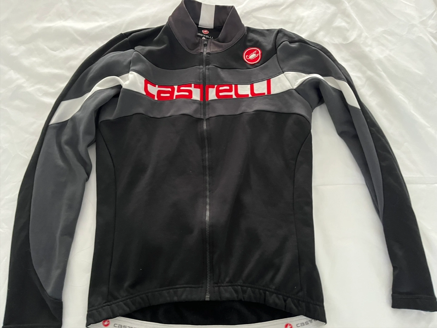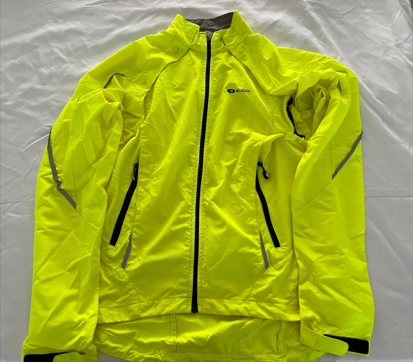 Brands: Castelli, Sugoi - Cycling jerseys and jackets. 5 pieces - 3x Castelli, 2x Sugoi. All clothing size M except neon yellow jacket is size S. Pictures include front and back of each piece of clothing.