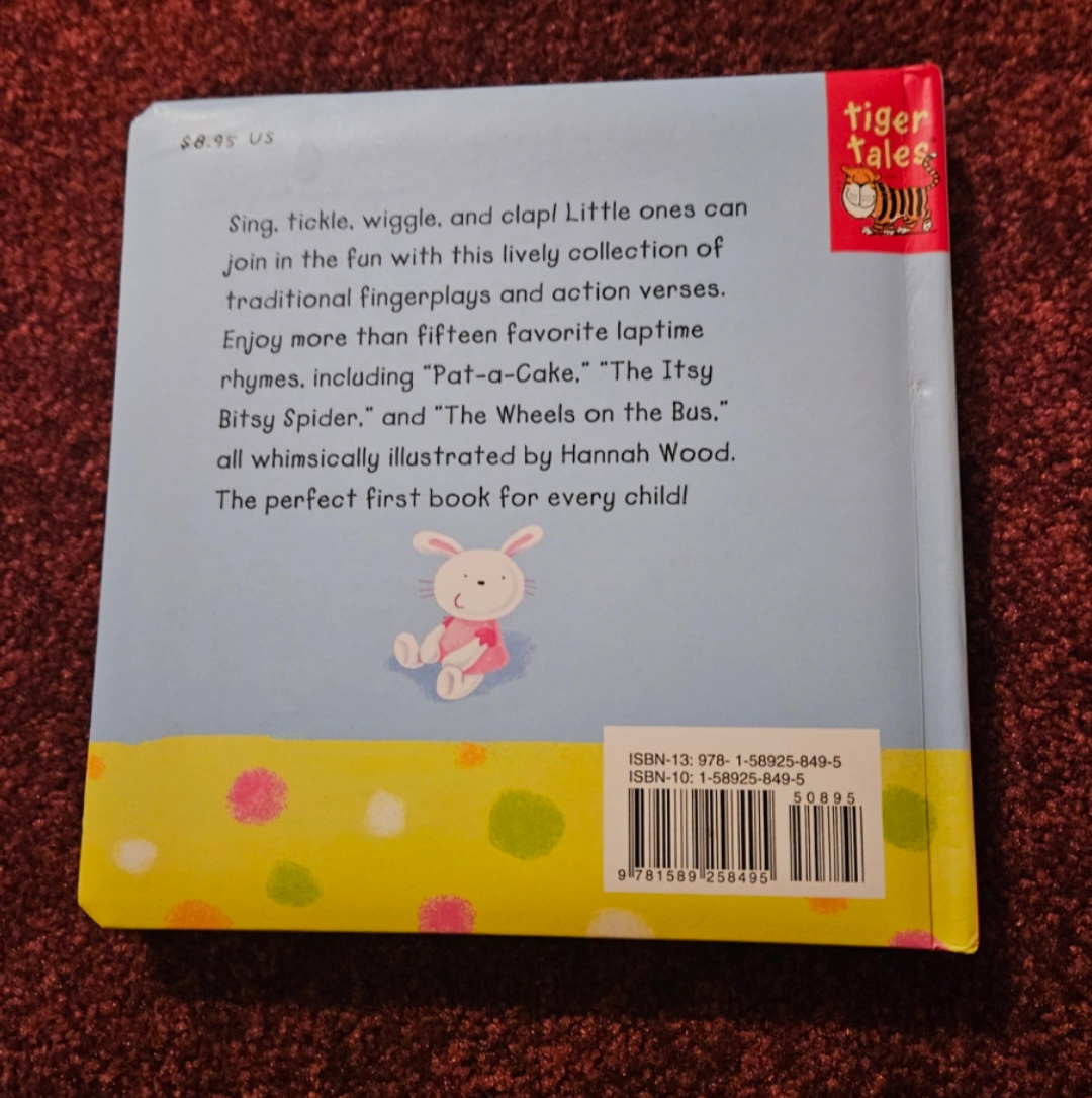 119Board book featuring action rhymes. Includes classic rhymes like "Pat-a-Cake", "The Itsy Bitsy Spider", and "The Wheels on the Bus". Whimsical illustrations by Hannah Wood. Perfect for young children.