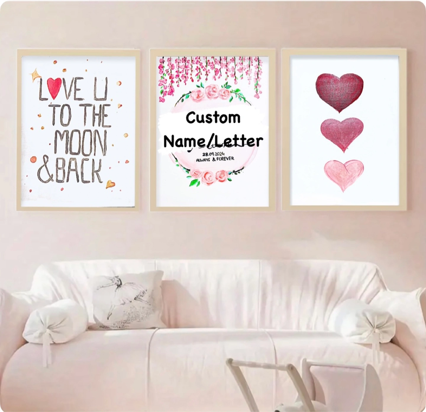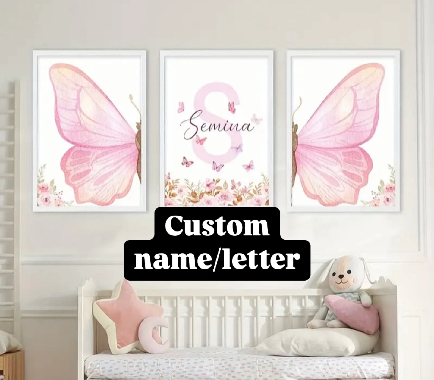 67💕Set of three customizable acrylic paintings. Personalized with a name or letter. Pink and floral theme. Various designs available: butterflies, hearts, or a love quote. Perfect for a romantic honeymoon suite,nursery or child's room. 💕Price varies on the size of canvas. Frame not included you can add it by opening the canvas poster. 💕Individual painting also available on demand. Note- Its not a print its a painting!! Call at ☎️ (613)-559-1666 to customize yours