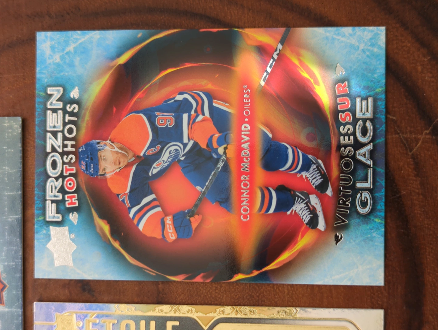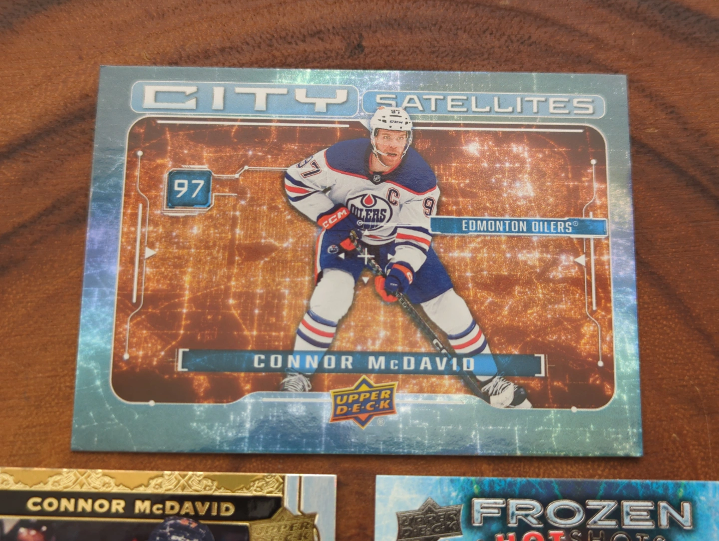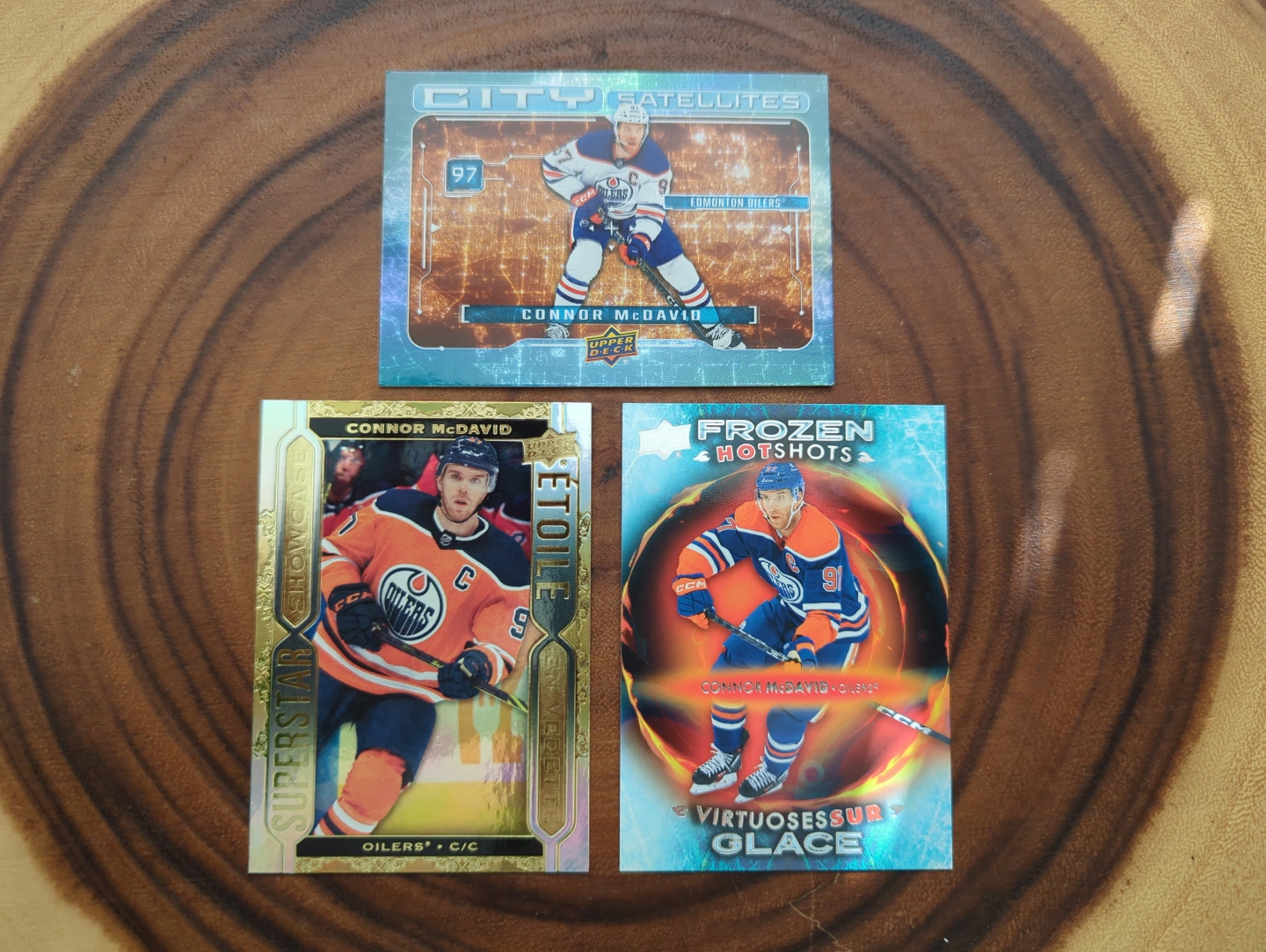 Three Connor McDavid hockey cards.