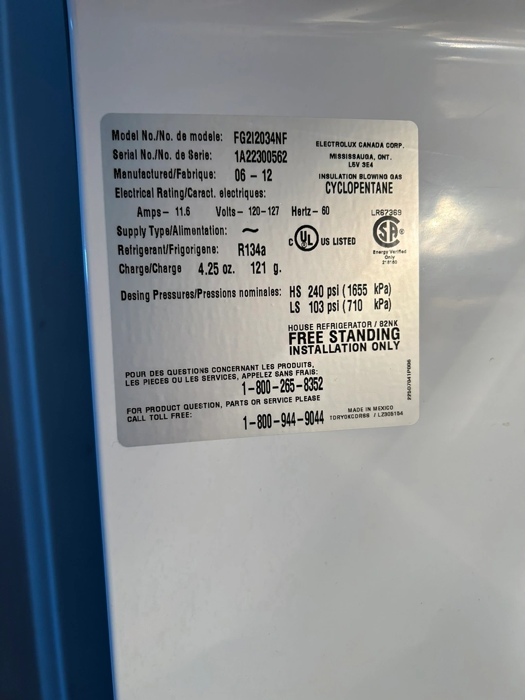 Stainless steel finish. Bottom freezer. Great condition. Model number FG212034NF.