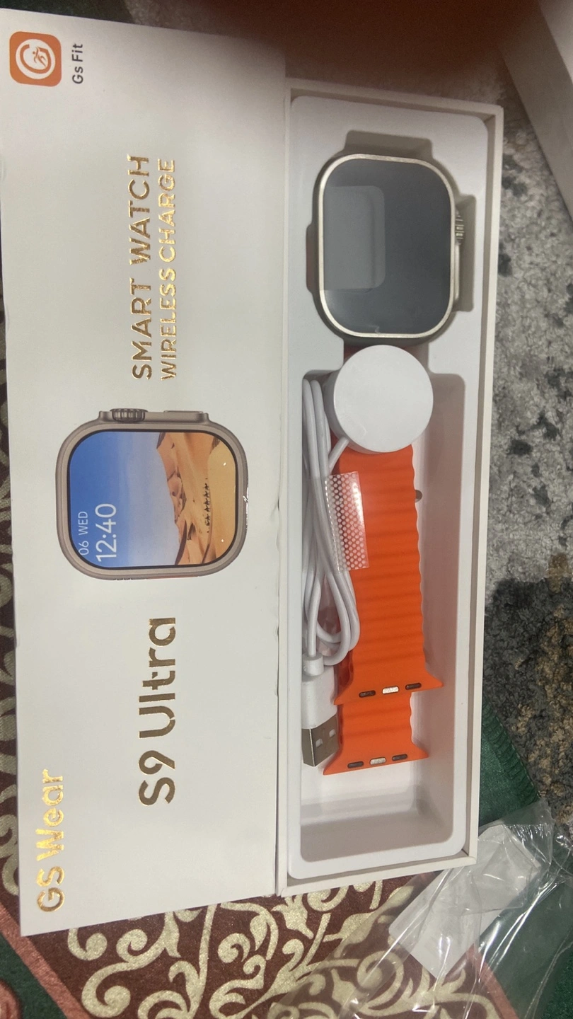 Brand new GS Wear S9 Ultra smart watch. Wireless charging. Includes box and accessories. Orange band.