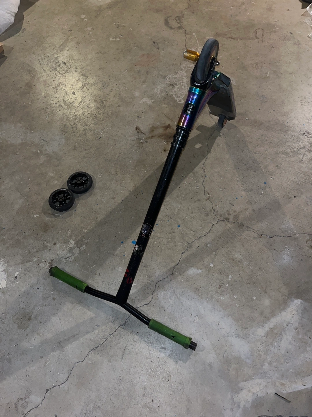 Buy & SellStunt scooterStunt scooter$190Oil slick lucky deck, black lucky fork, tfox T bar, gold pegs, and extra set of black 9 spoke wheels. Needs grip tapeConditionGoodWHERE TO MEETVictoria parkView MapSELLERJpVictoria Park100 reviews0 chats·0 favorites·18 views
