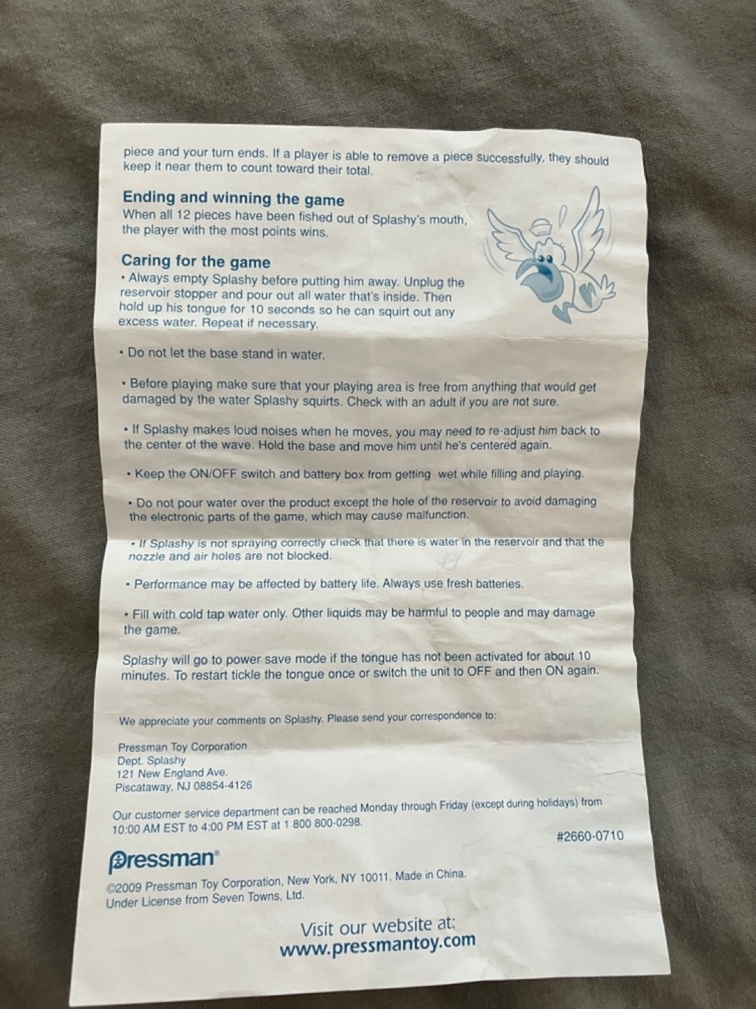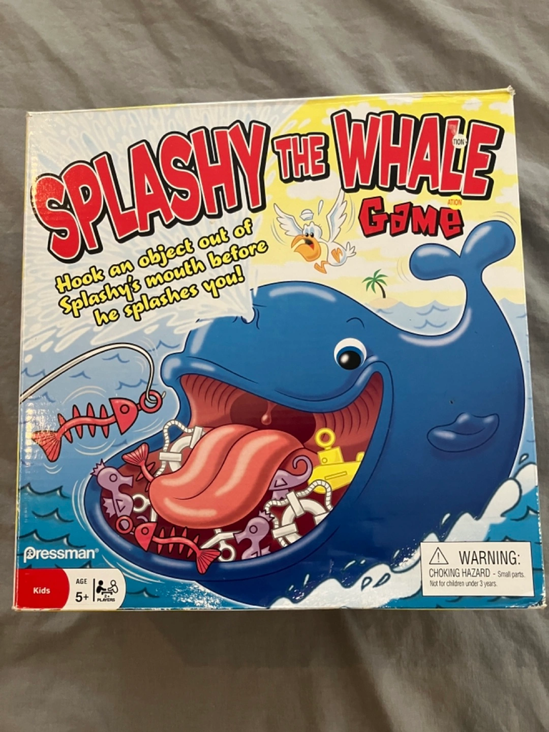 Fun game for 2 or more players, ages 5+. Includes whale game piece, 12 assorted ocean pieces, fishing rod, and rules. Requires 3 AA batteries (not included). Water-activated.