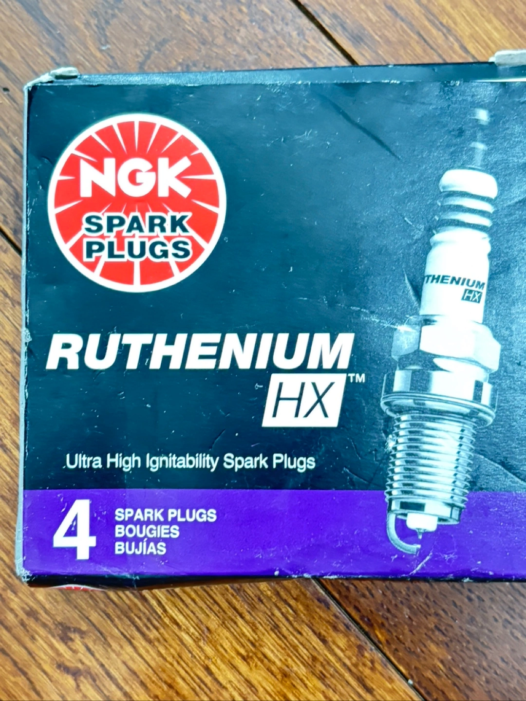New, never used NGK Ruthenium HX spark plugs. Ultra high ignitability. Four plugs included. Part number LKR7BHX. 94705.