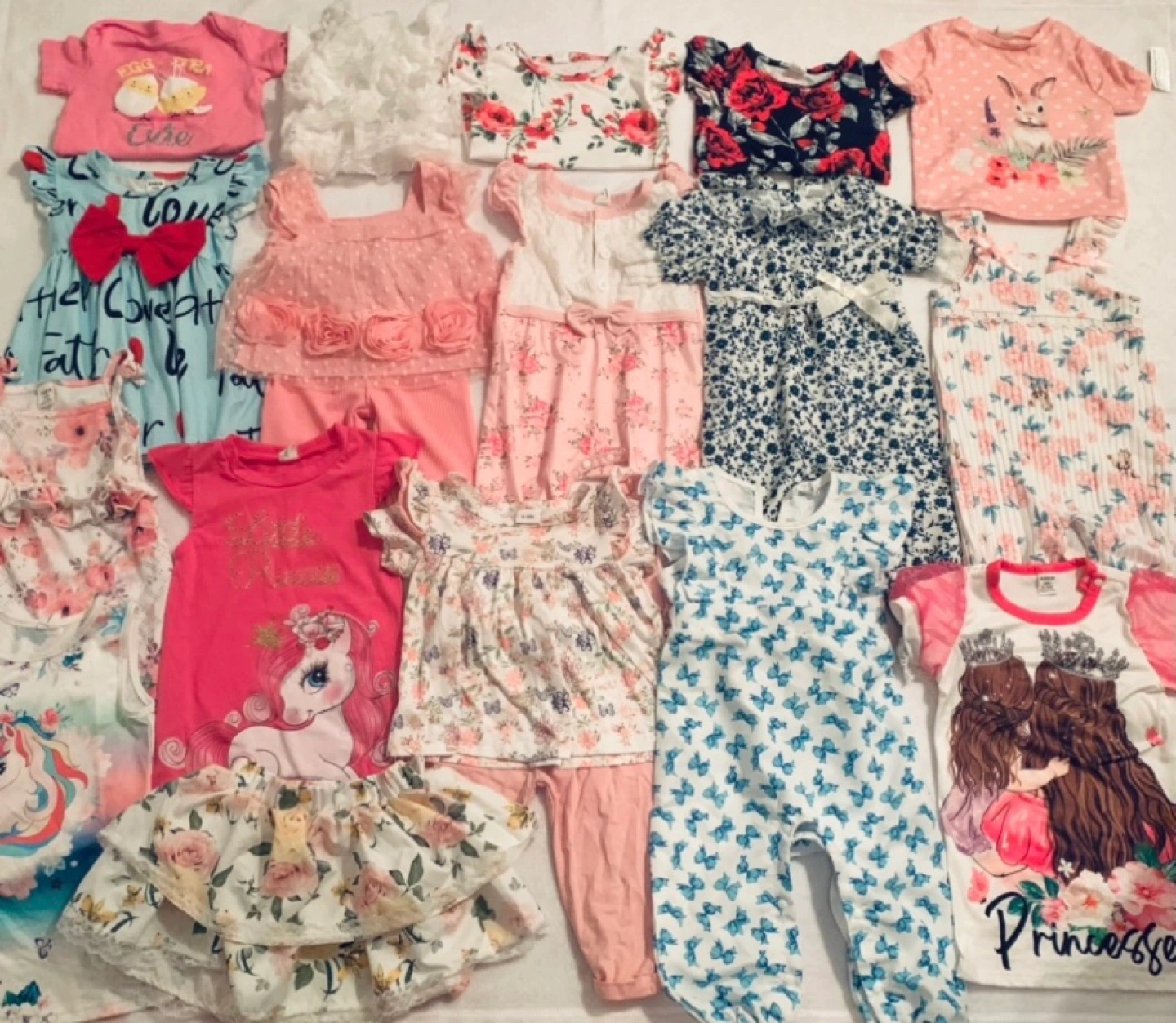 Bundle includes dresses, tops, pants, and a skirt. Various floral and cute designs. Great for spring and summer. Excellent pre-loved condition. $3 for each outfit.