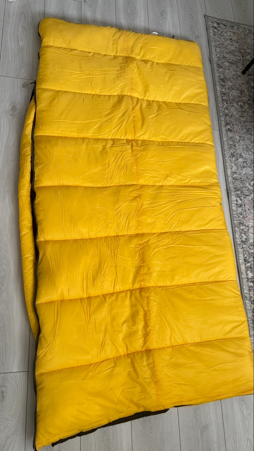 Rectangular sleeping bag. Thermolite insulation, very warm. Great for camping. Measures 34" x 76". Weighs 4 lbs 5 oz. Compact storage. Like new condition.