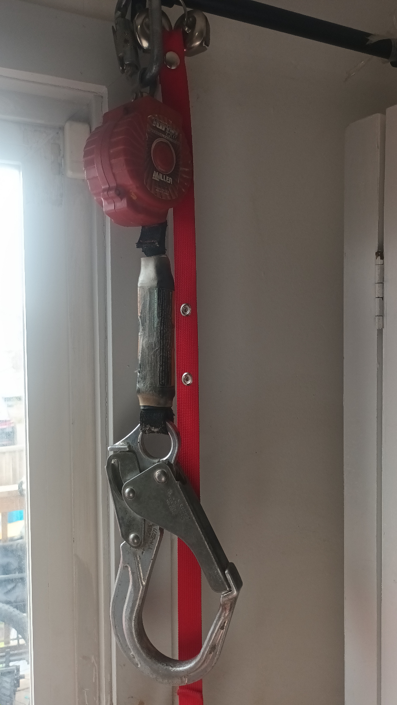 Used Miller Turbo Personal Fall Limiter. Red casing. Includes webbing and connectors. Shows some wear. Willing to trade for PPE or Carpenter Tools. Go oilers go.