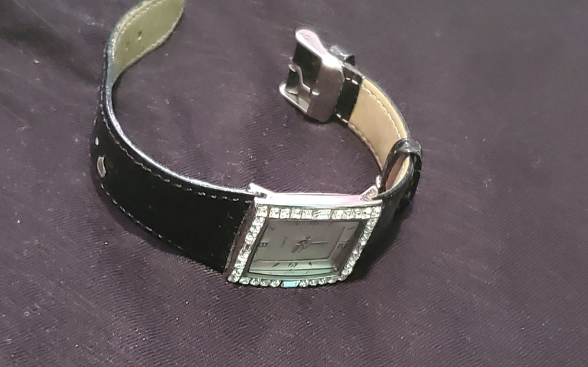 Buy & SellWomen's Hudson Quartz Watch with Rhinestone Bezel - Black/SilverWomen's Hudson Quartz Watch with Rhinestone Bezel - Black/Silver$1Square face watch. Black leather band. Rhinestone accents around the bezel. Quartz movement. Pre-owned.WHERE TO MEETCheck LocationView MapSELLERverifiedAliya RJErindale1145 reviews1 chats·1 favorites·24 views