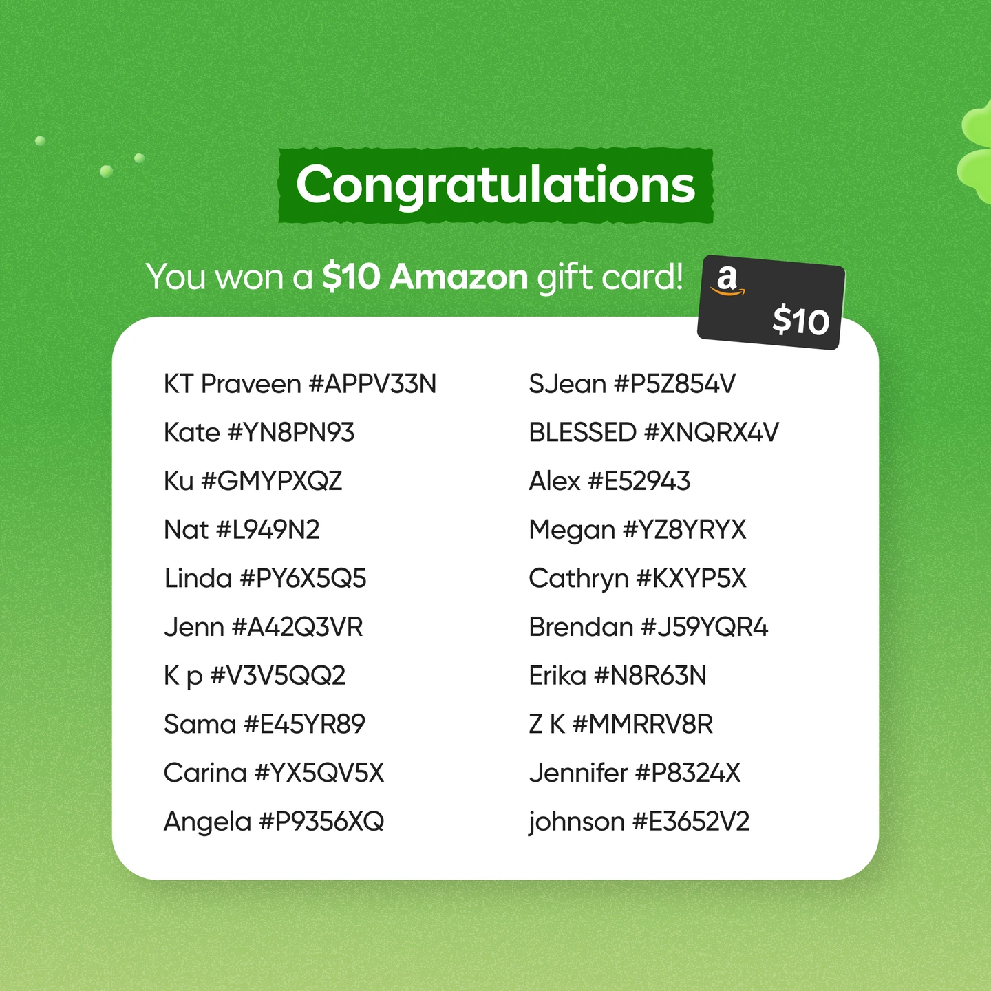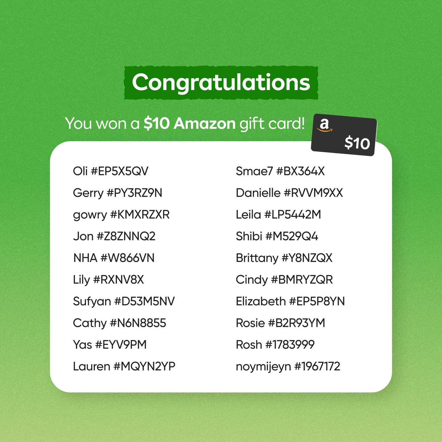 1000+Hey Karroters! Thanks for participating in our Spring Declutter Challenge! We appreciate everyone who participated this time, and were excited to read all the comments from everyone who posted. Now, for the moment you’ve all been waiting for.....the winners of the Amazon gift cards have been revealed 🥳🥇 Please check the image above to see the list of winners! 🎆 Amazon Gift Card Winners 1. Please check your "My Rewards" section in the app. Gift cards have all been sent out! 2. Some users may share the same name so please check the unique user number. To view your user number go to My Karrot > View profile. Our team has already reached out to all winners individually. 3. Share your excitement with the Karrot community in the comments down below! Don’t be discouraged if you didn't win this time, we run events at Karrot very often! Remember that these events are about more than just the rewards. You’re making someone’s day and helping us build a more community-based marketplace 🫂🧡 Thanks for tuning in and keep checking Karrot every week for more events like these 💗