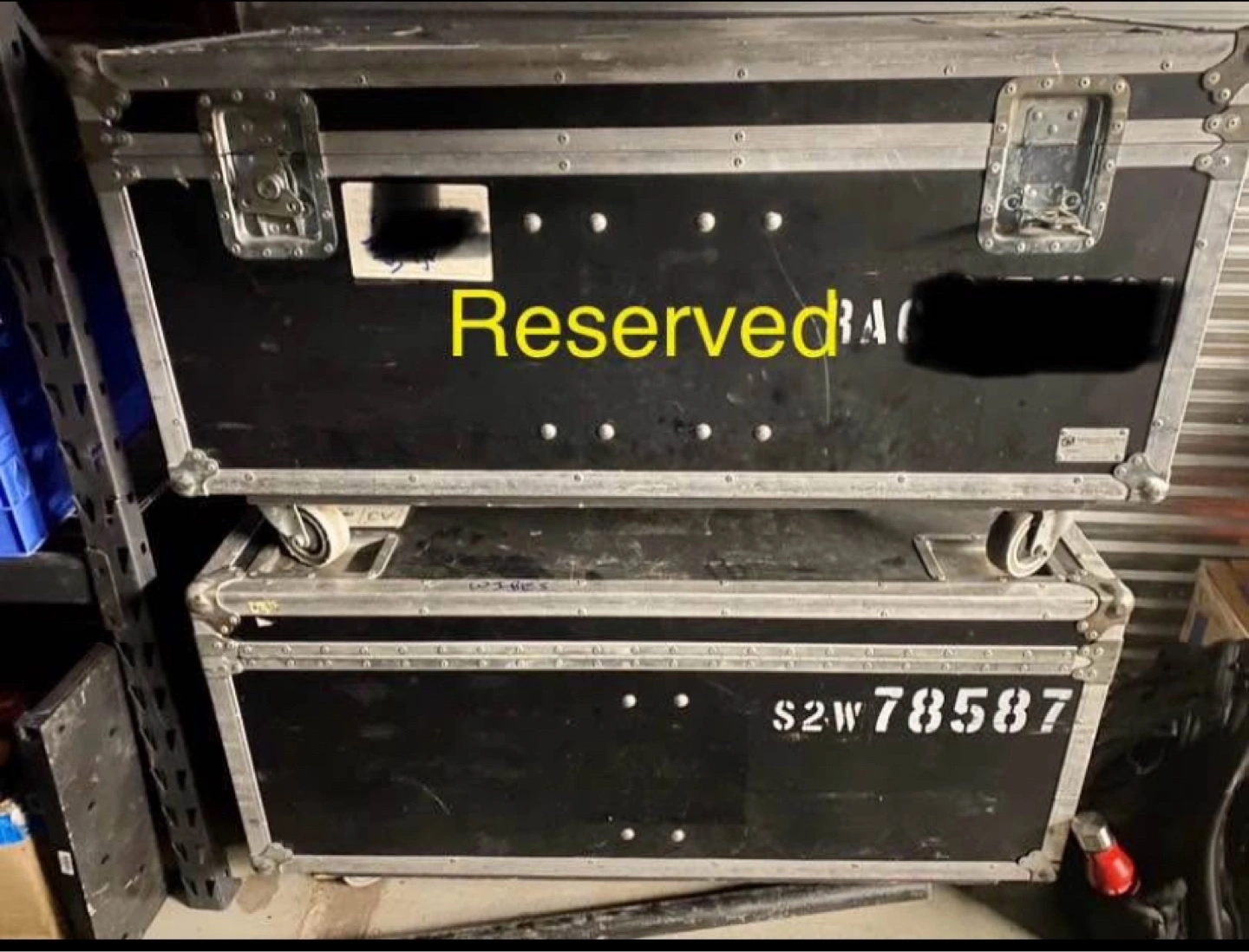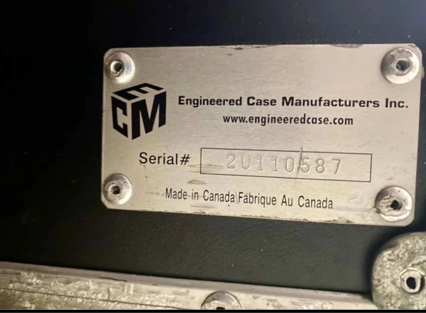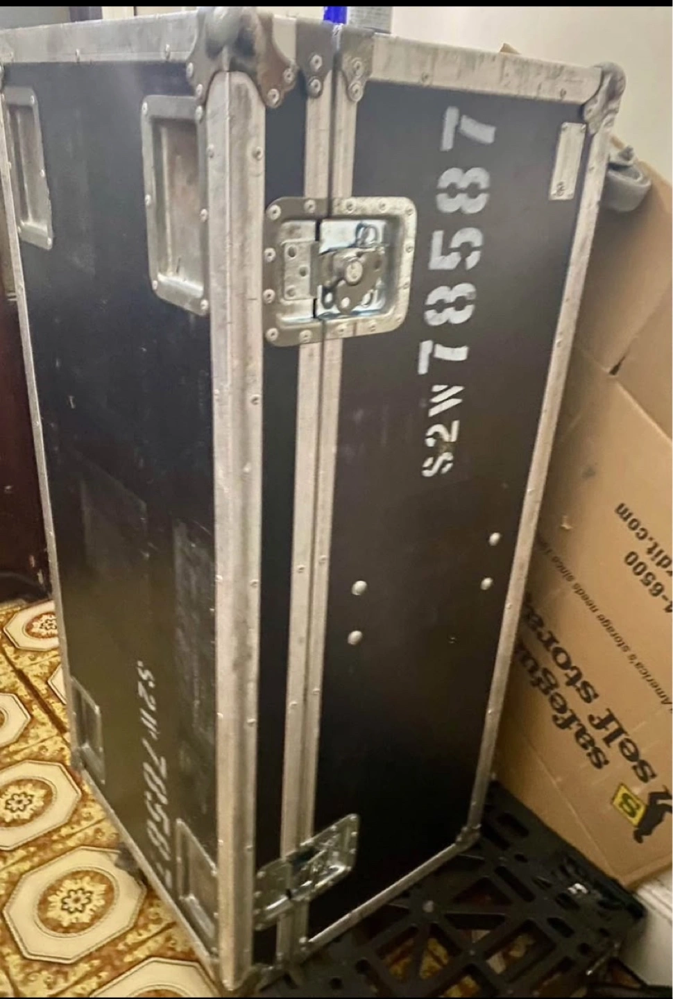 Large Road Case/ Trunk with Casters. Made by Engineered Case Manufacturers Inc. Measures approximately 48in x 24in x 20.5in without casters, 26in with. Carpet and foam removed. This was used by a film and production company.