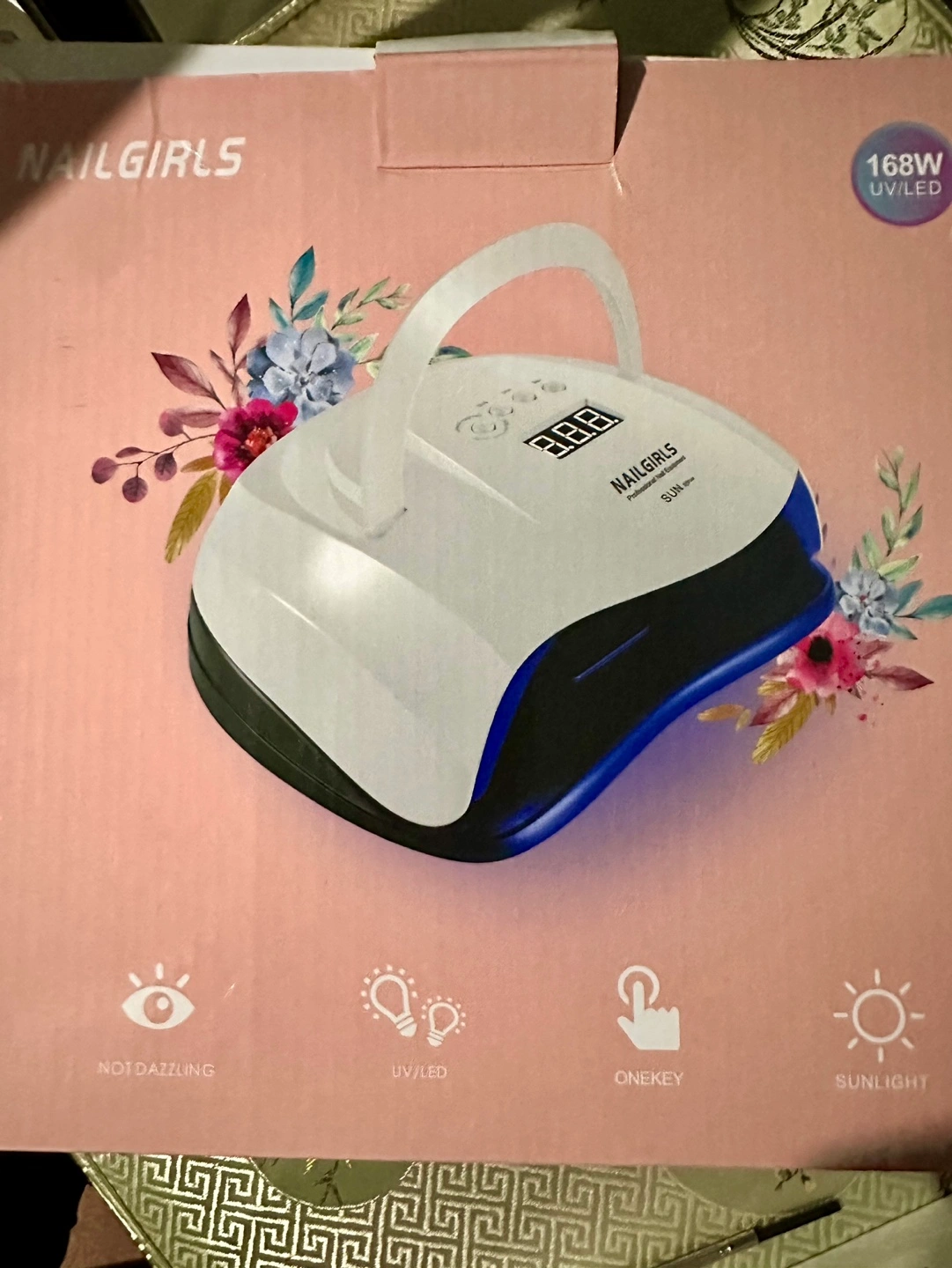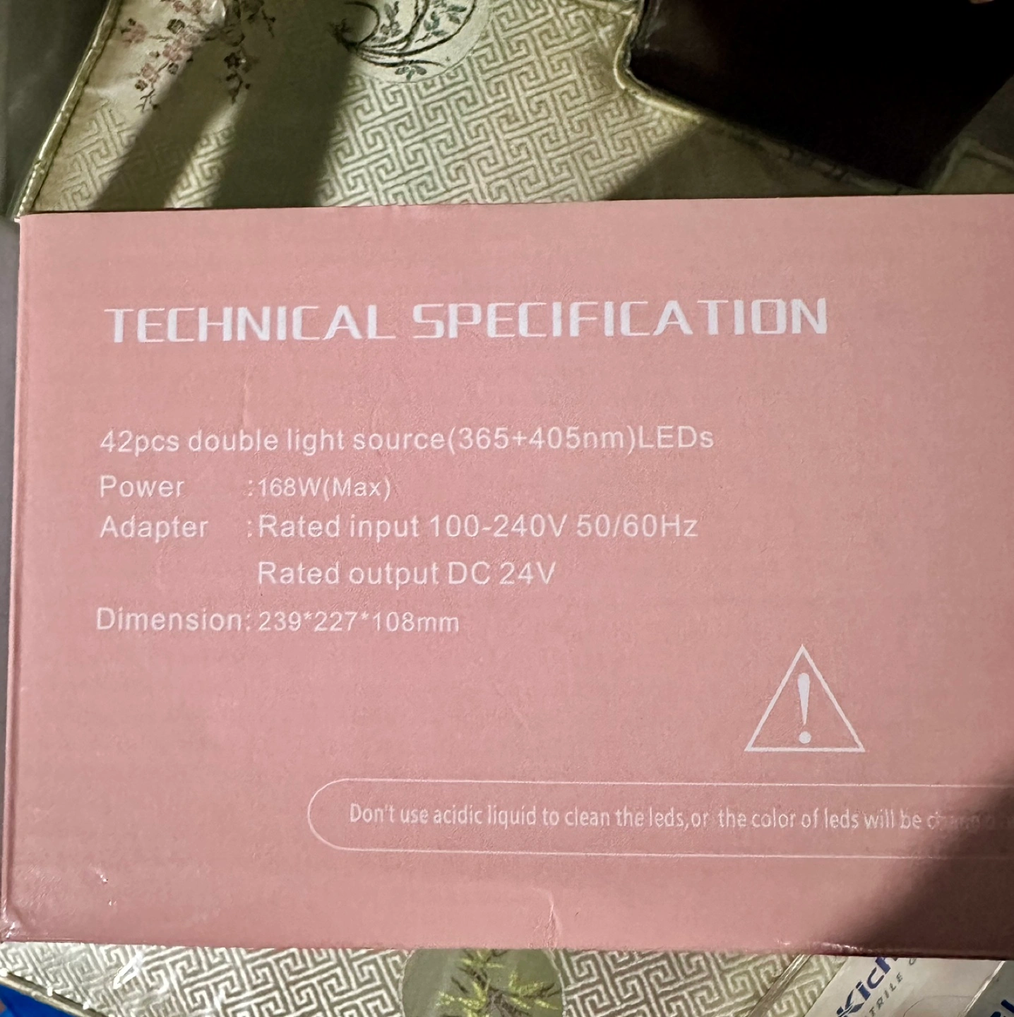 Professional gel polish LED nail dryer lamp. 168W UV/LED light. 42pcs double light source. Digital timer. Includes adapter.