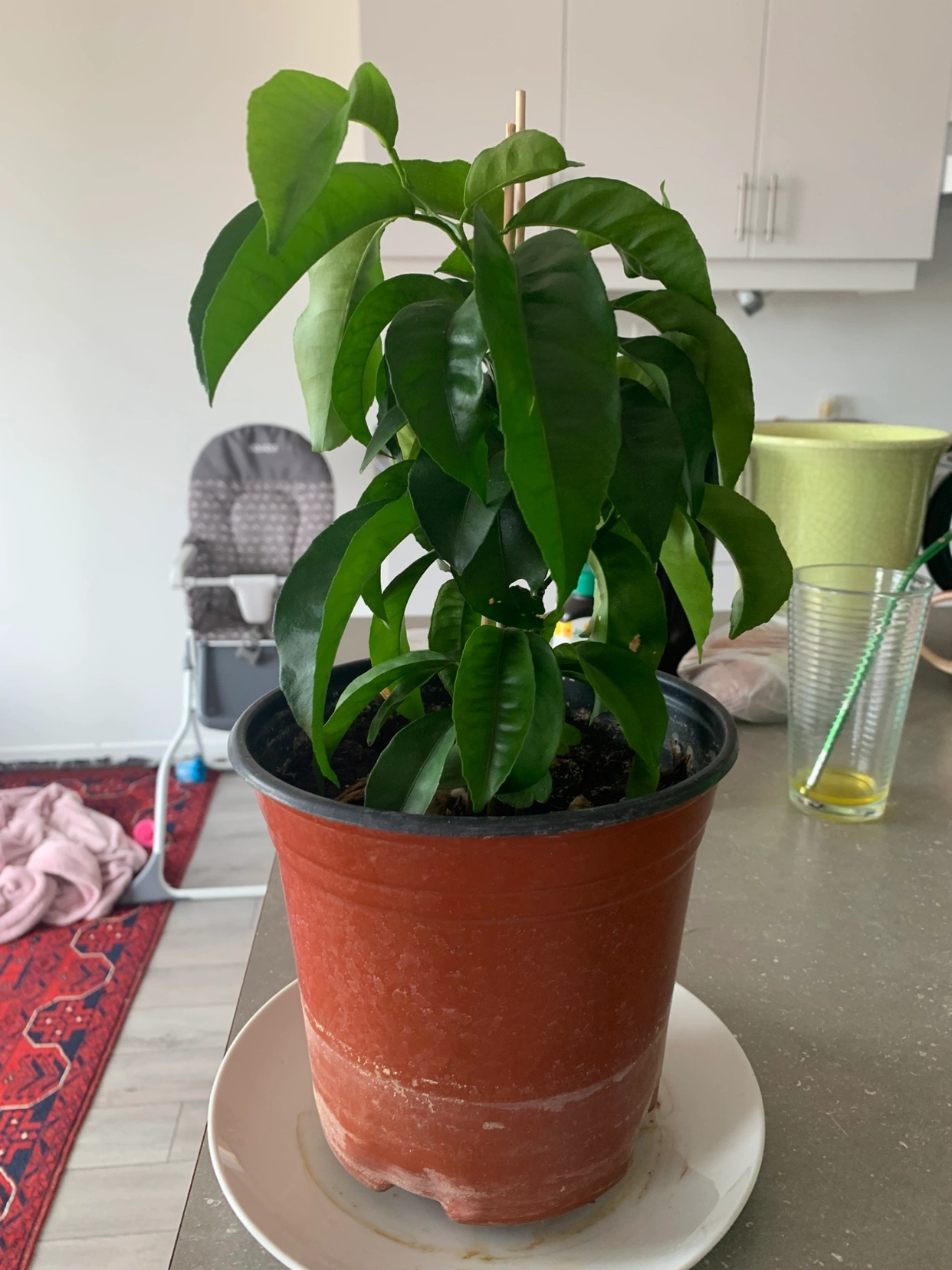 17Healthy young Meyer orange tree. Small size, perfect for indoor growing. Planted in a terracotta pot. Needs repotting soon.