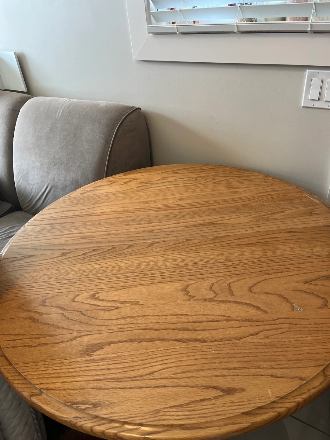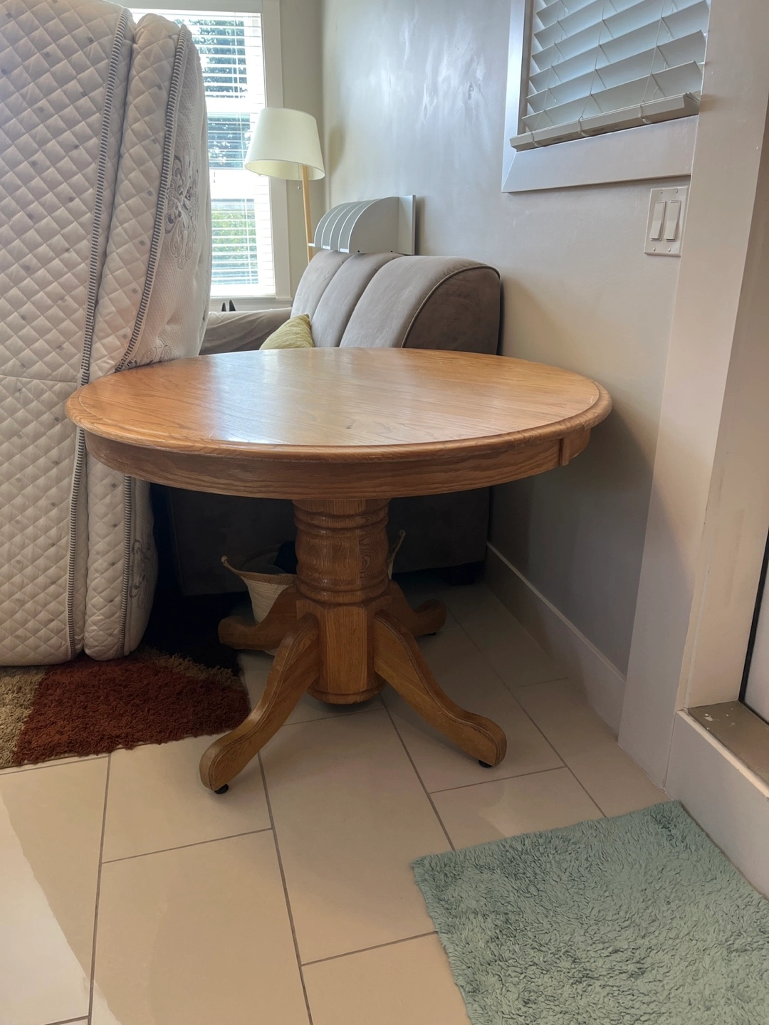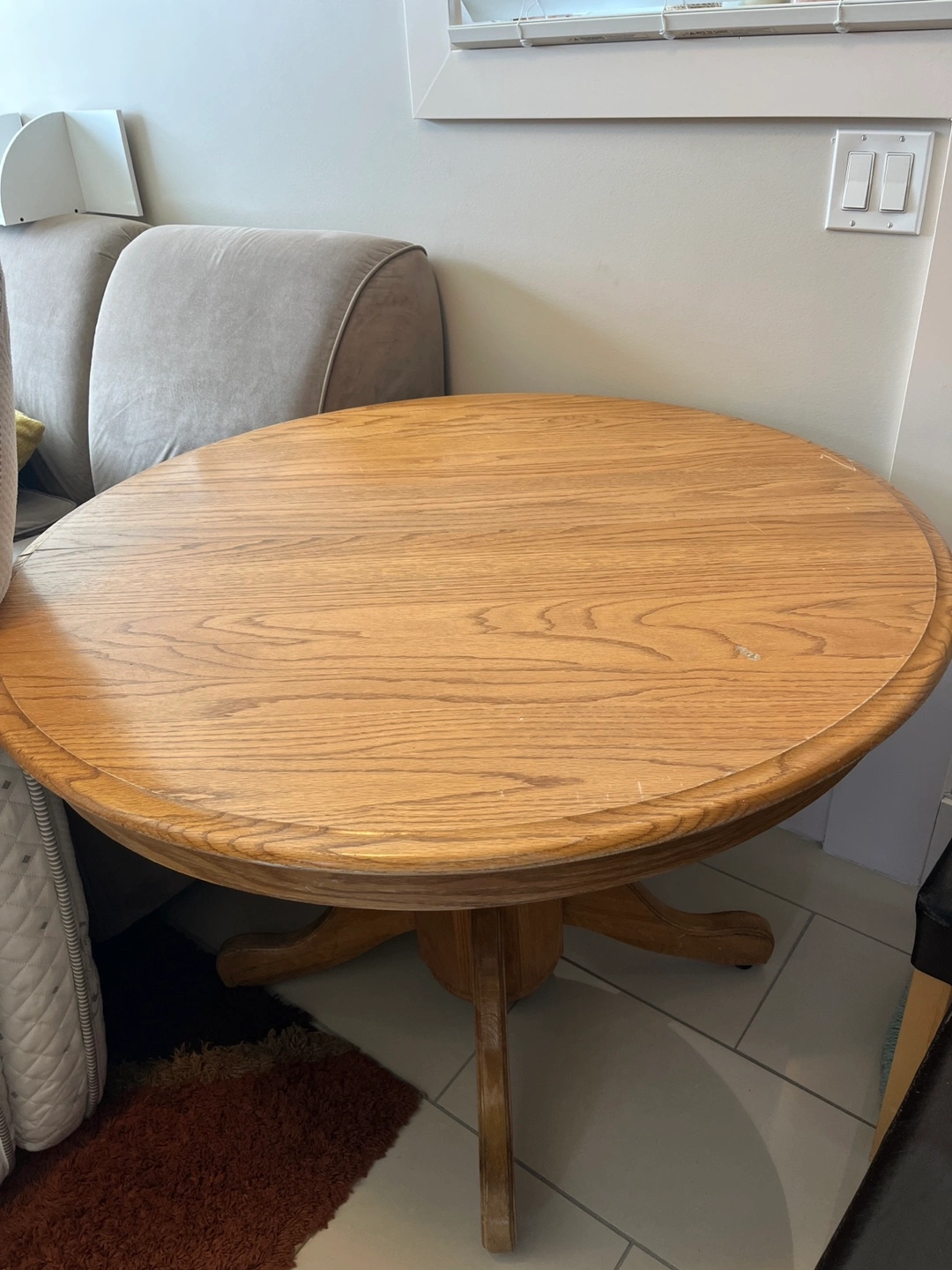 Buy & SellRound Wooden TableRound Wooden Table$65Round pedestal table. Oak wood. Some minor wear and tear.ConditionGoodWHERE TO MEETNumber 3 RoadView MapSELLERverifiedAlexMarpole22015 reviews0 chats·0 favorites·22 viewsSEND CHAT TO SELLERHi Alex! I’m interested in your listing.Hi Alex! I’m interested in your listing.Get the Karrot app to chatSign In to chat