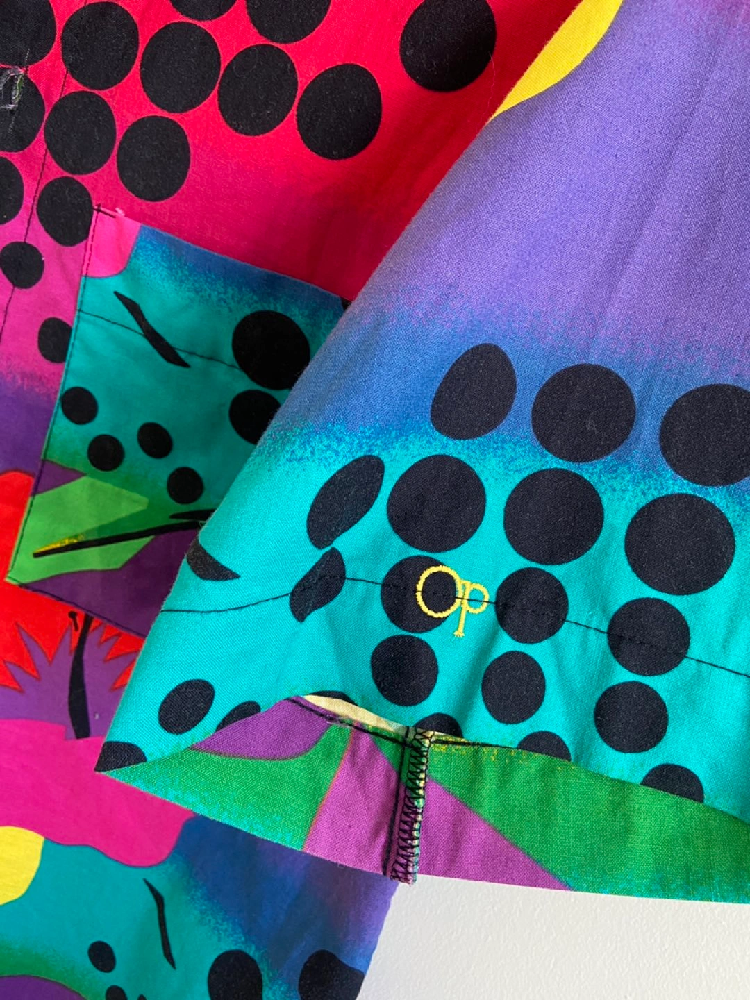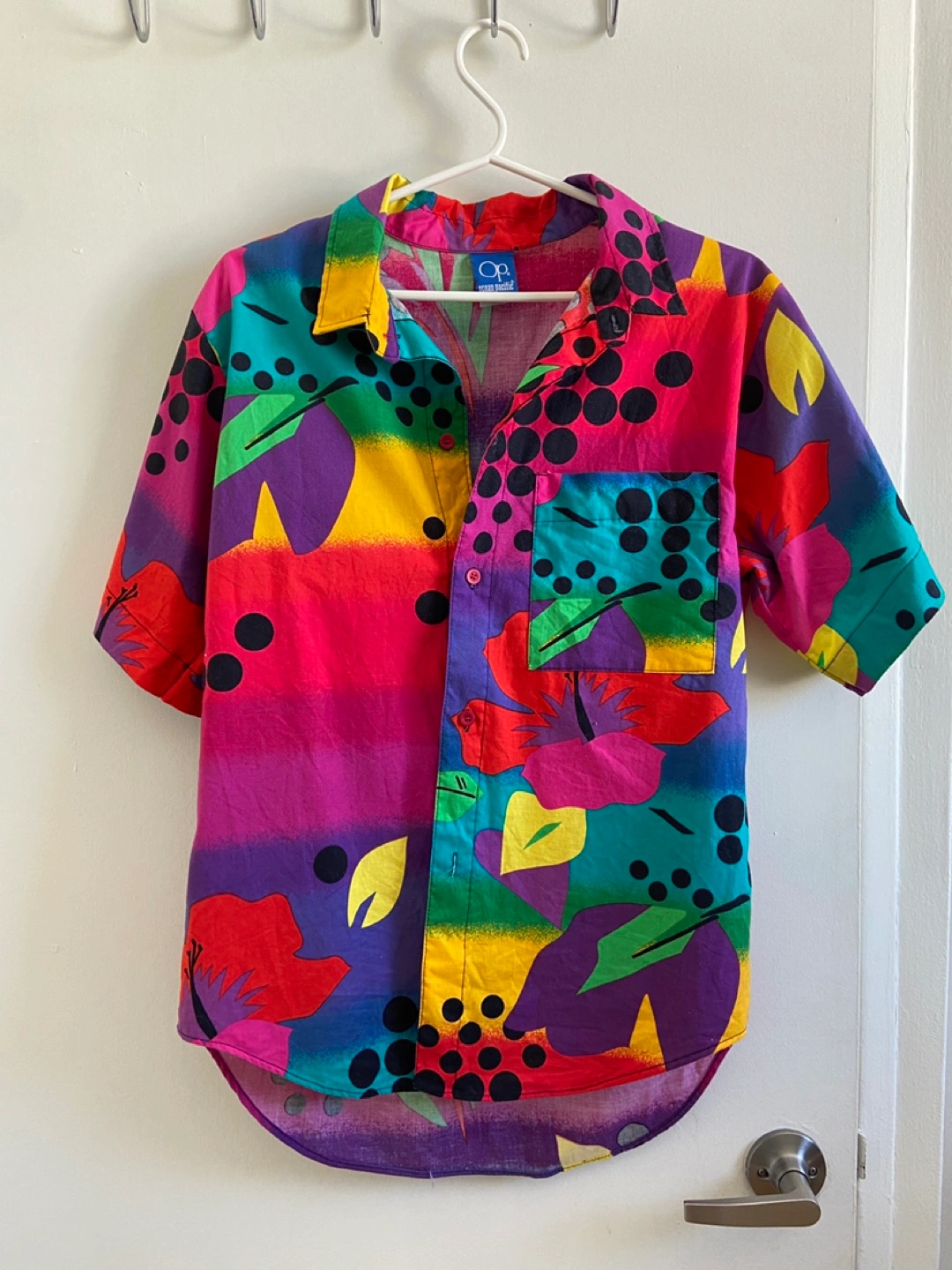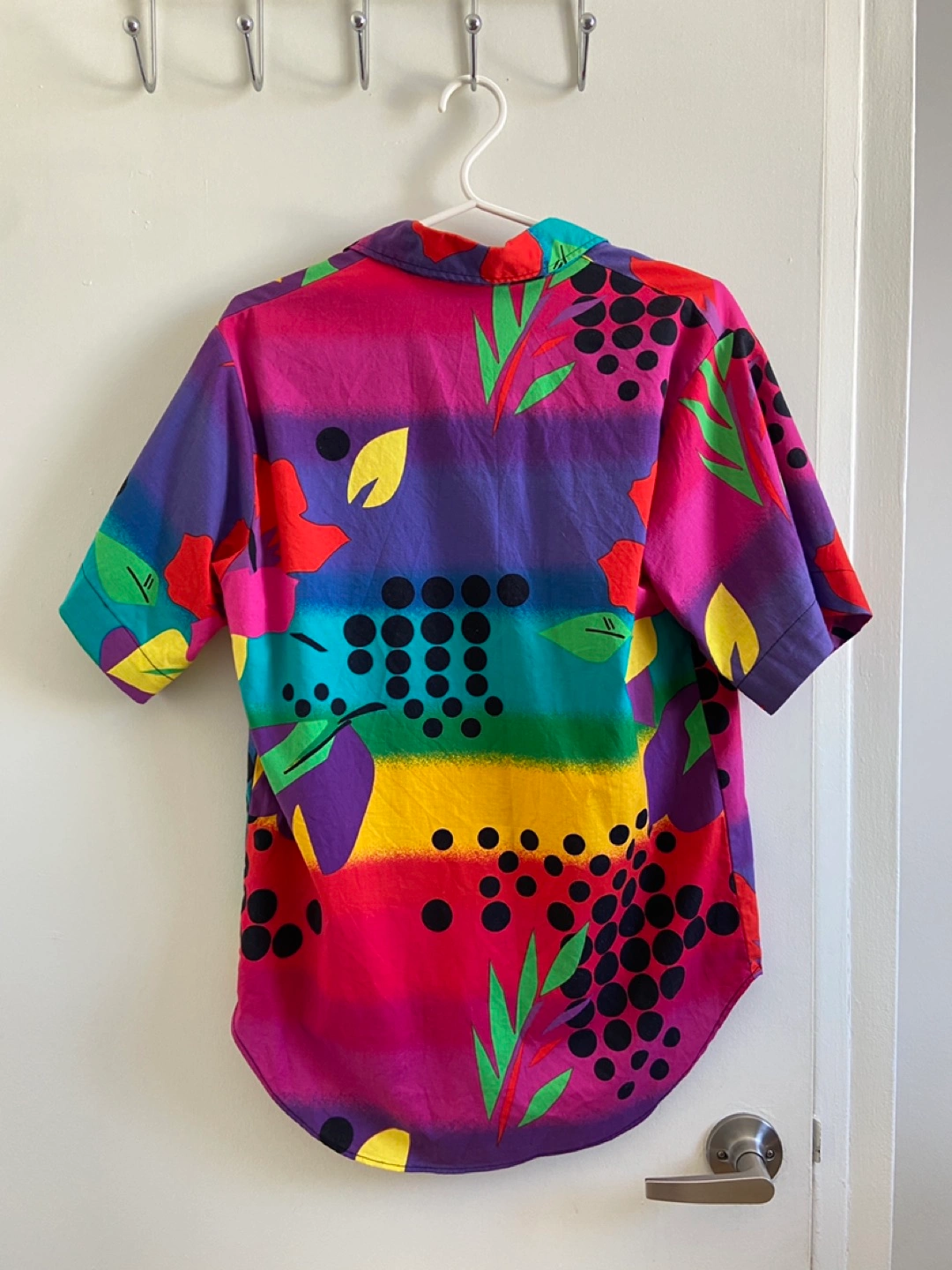 Brightly patterned button down shirt