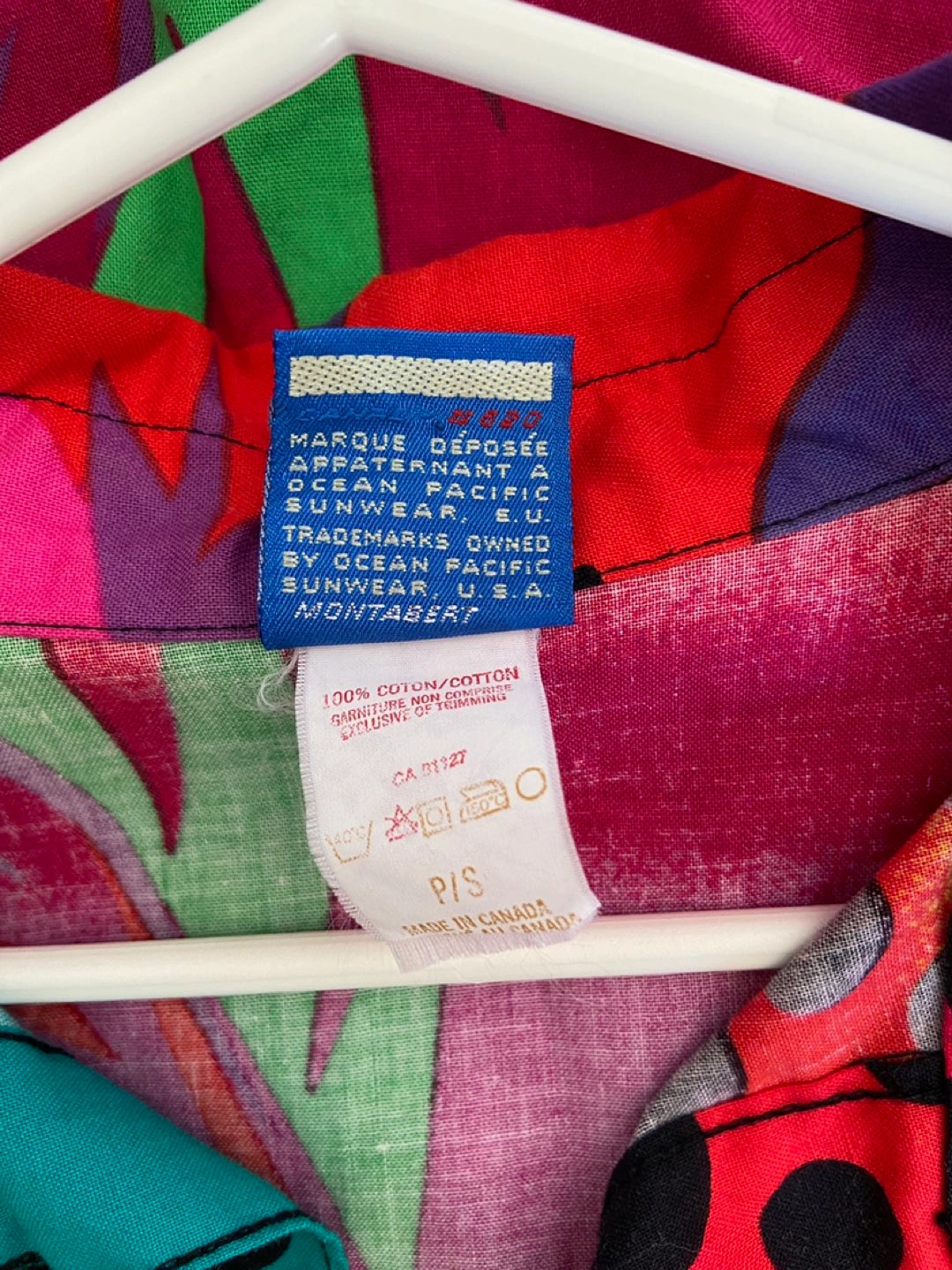 Brightly coloured tropical pattern button down shirt