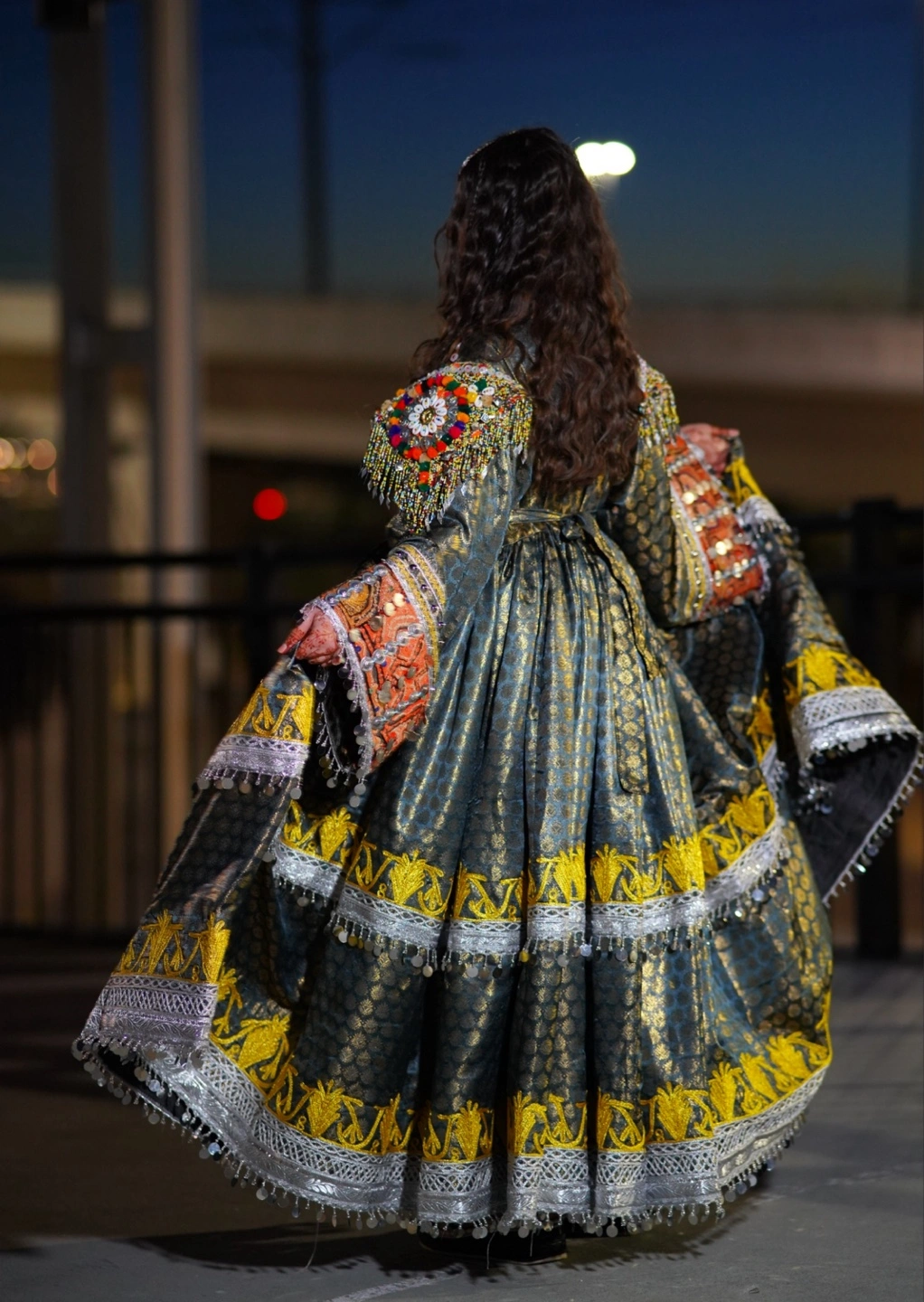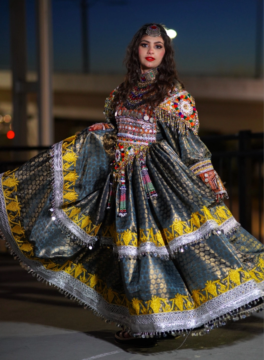 Stunning afghani traditional dress. Features beautiful embroidery and layered skirt. Long sleeves and vibrant colours. Perfect for special occasions or cultural events.