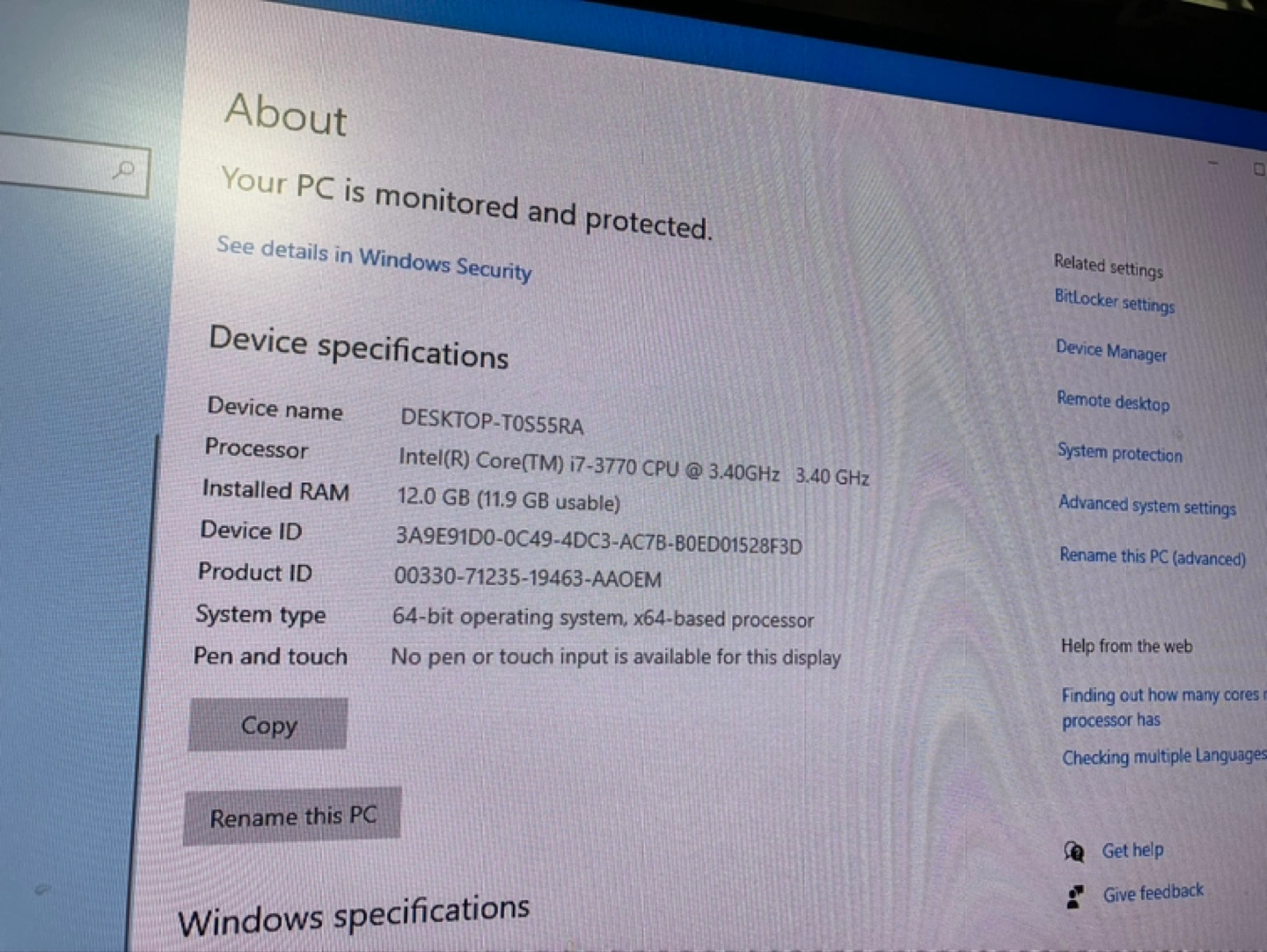 • Processor: Intel Core i7-3770 @ 3.40 GHz (Quad Core, 8 Threads)