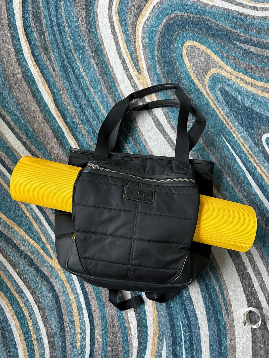 1000+The Lily Bag is a must-have carry-all with many compartments, including a padded 13-inch computer pocket. An everyday essential, this bag transitions from backpack to tote, allowing you to shift from yoga to work, travel, and more. Complete with water bottle and yoga mat compartments. Features: 13" padded laptop pocket 2 bottle compartments 2 ways to carry : Tote bag or backpack Exterior pocket for easy access to essentials Tuck-away backpack straps Yoga mat compartment Zippered main compartment Dimensions: 13” x 17.5” x 7.5” Some wear on the corners but otherwise in great condition