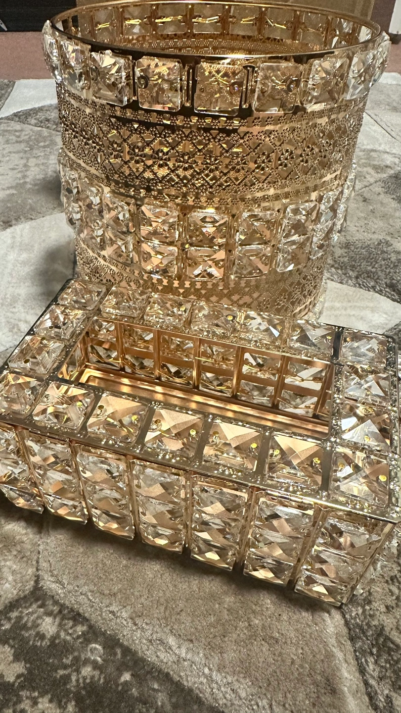 Gold Crystal Tissue Box and Wastebasket Set