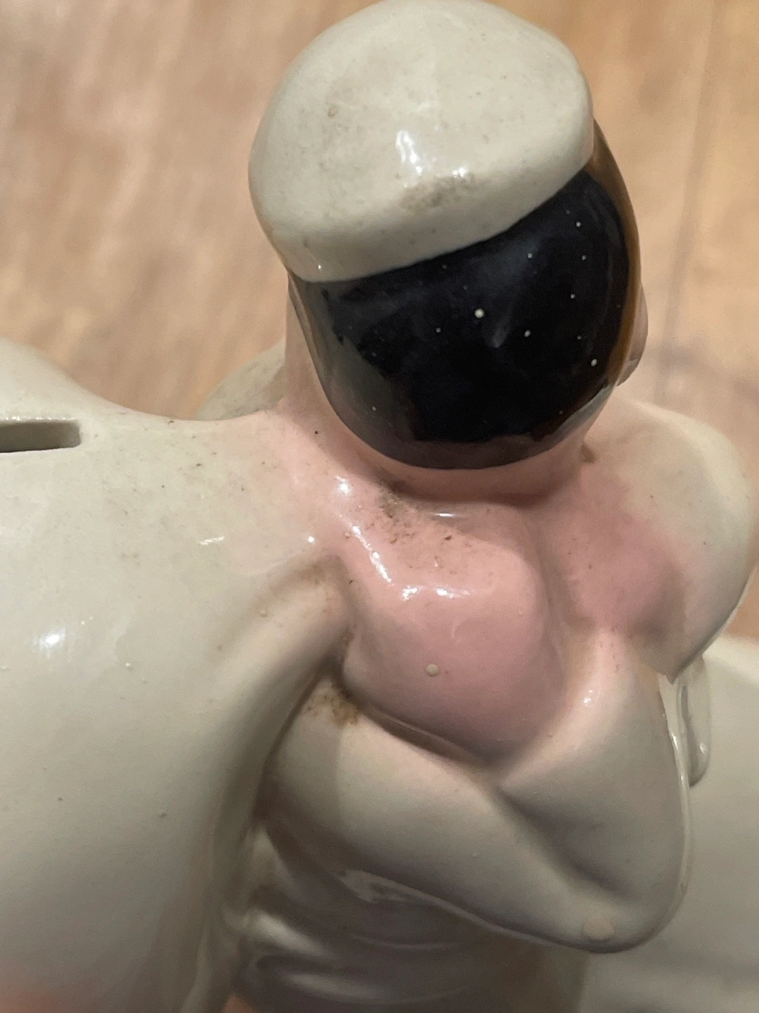 Buy & SellVintage Seaman's Bank for Savings Piggy BankVintage Seaman's Bank for Savings Piggy Bank$25Adorable vintage WW2 ceramic piggy bank. Features a sailor carrying a large sack. Bottom shows The Seaman's Bank for Savings. Shows some minor wear.ConditionGoodWHERE TO MEETMcgorlick ParkView MapSELLERverifiedGeneGreenpoint701 review0 chats·1 favorites·9 views
