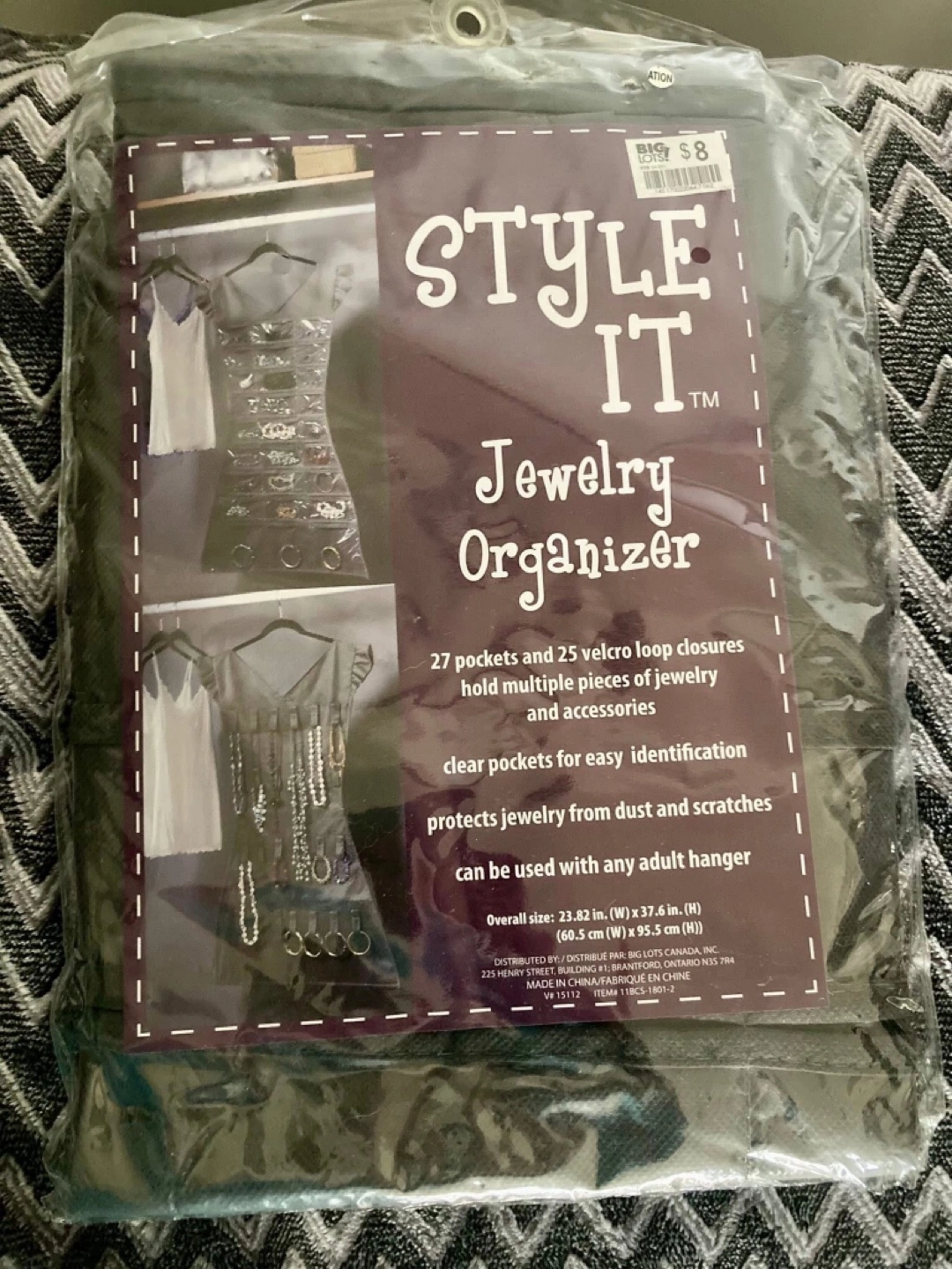 Holds jewelry and accessories. 27 pockets and 25 Velcro closures. Clear pockets for easy identification. Protects jewelry from dust and scratches. Works with any adult hanger. Measures 23.82 in (W) x 37.6 in (H).
