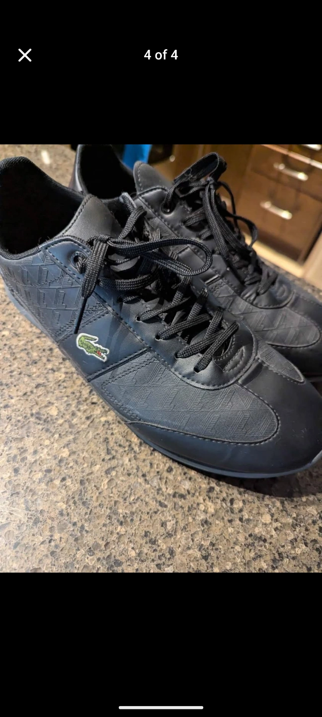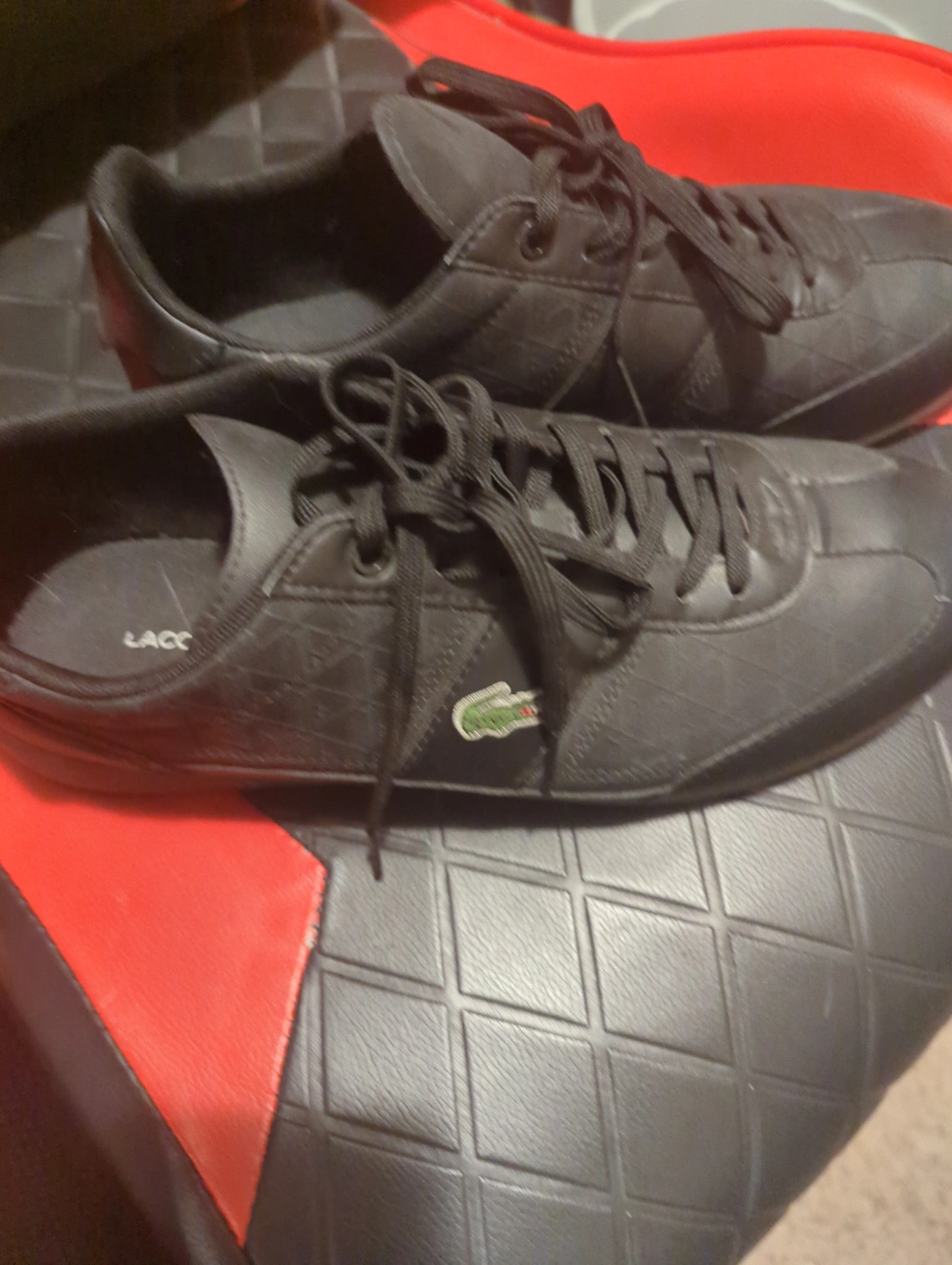 Buy & SellLacoste Men's Black Leather SneakersLacoste Men's Black Leather Sneakers$40Pair of men's black leather Lacoste sneakers. Embossed pattern. Lace-up closure. Good condition.BrandLacosteWHERE TO MEETCheck LocationView MapSELLERchrisWindsong463 reviews1 chats·0 favorites·37 views