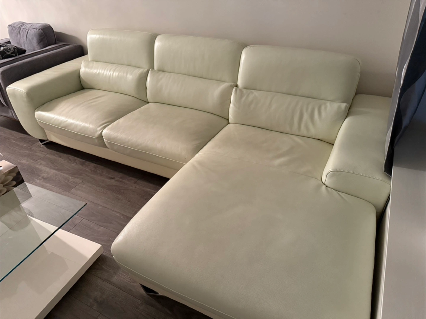 Off-White/Cream Leather Sectional L-Shaped Sofa