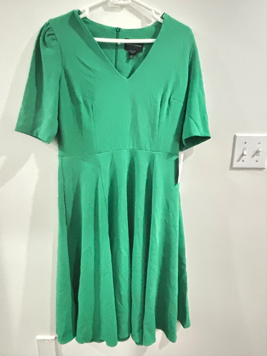 18Beautiful bright jade green fit and flare dress. Short sleeves, V-neck. Size US 12