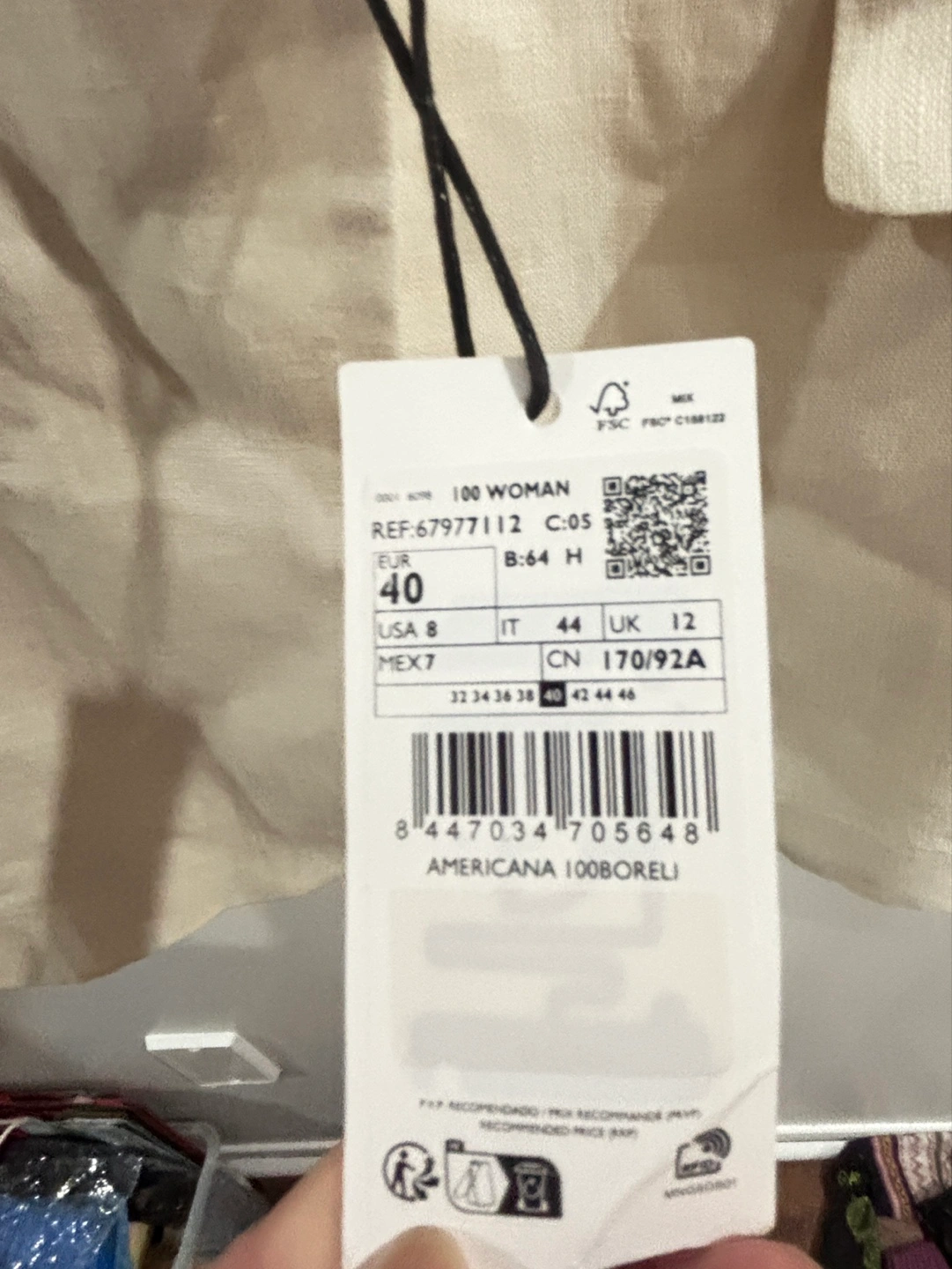 18Lightweight, 100% linen blazer. Single button closure. European size 40, US size 8, Mex size 7. Made in Vietnam.
