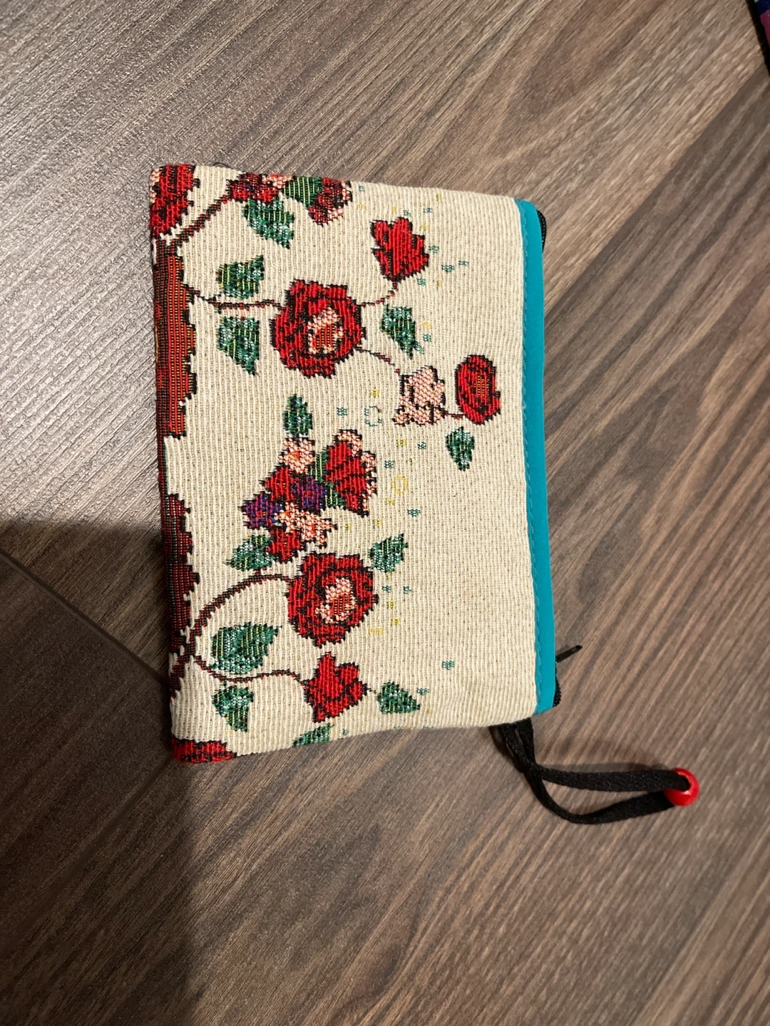 Set of four cosmetic pouches / bags. Various colours and patterns. One is floral, one is a striped pattern, one has 2 owls, and one is a cutout design. Great for travel or organizing.