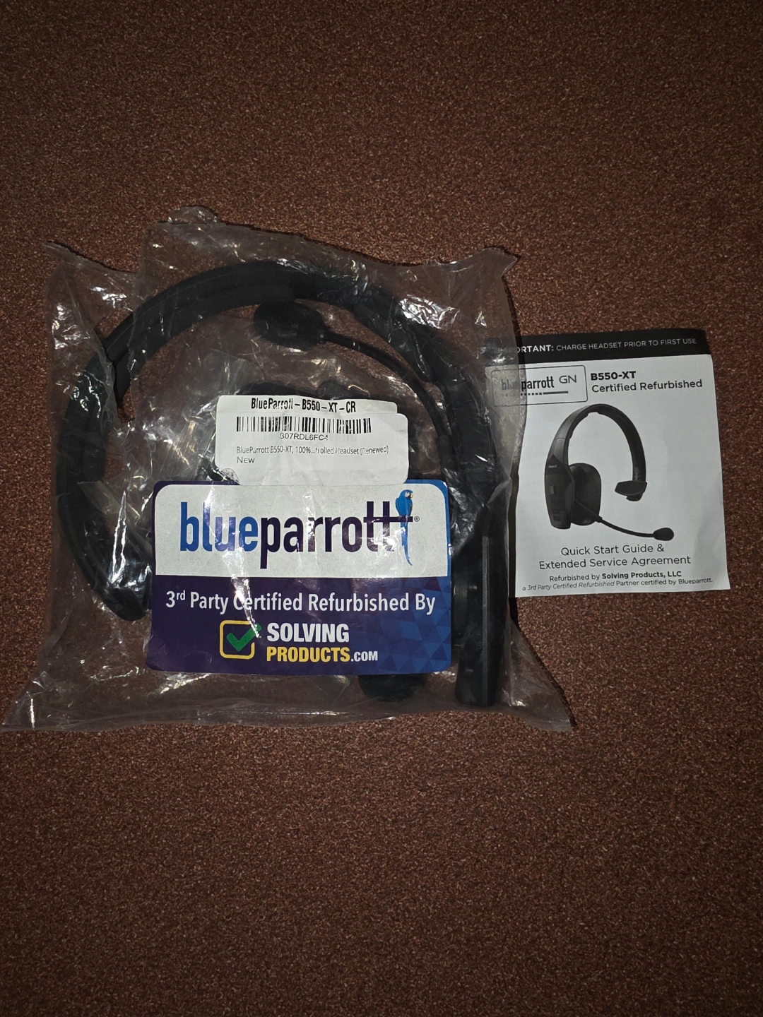 Certified refurbished BlueParrott B550-XT headset. Includes charging cable and power adapter. Excellent condition. No box, just open the package to check and been never used.Comes with all the accessories