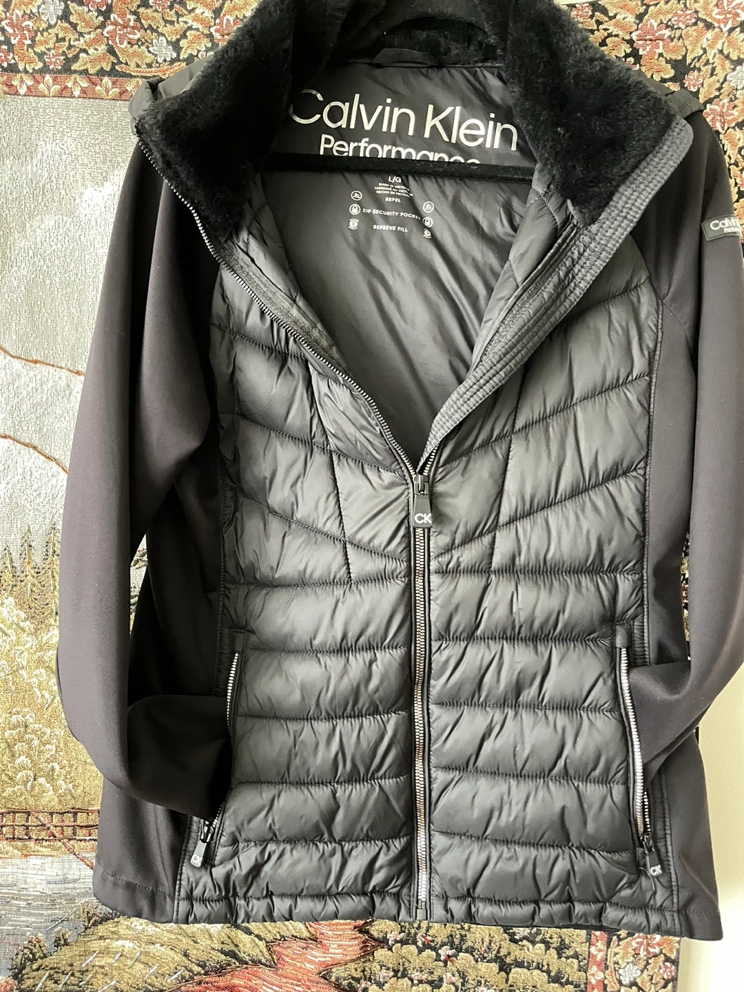 Stay warm and stylish with this sleek Calvin Klein Performance jacket in size Large (L/G). This jacket features: