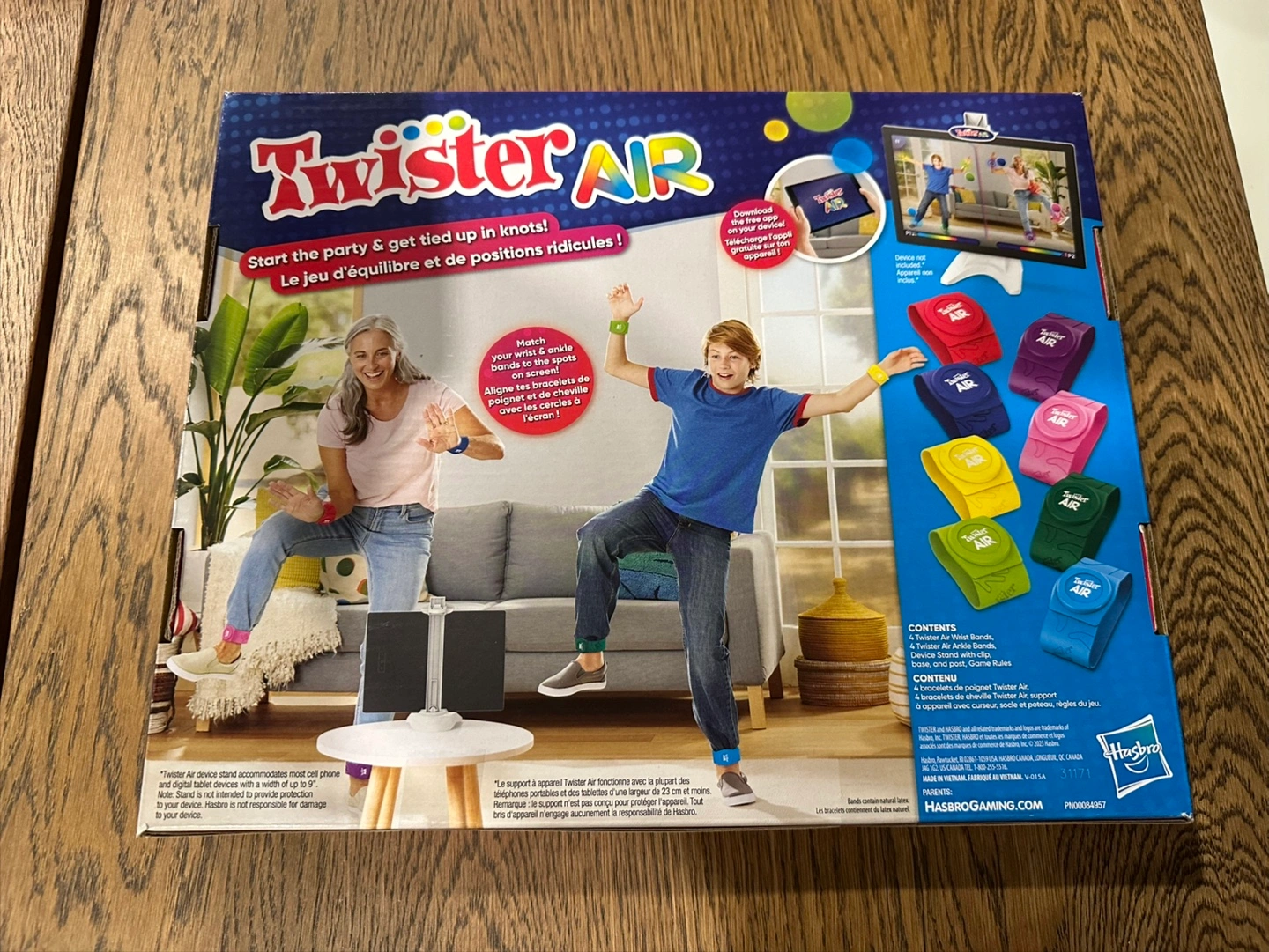 131New, unopened Twister Air game. Includes wristbands and game app. For ages 8+. Active game, great for family fun.