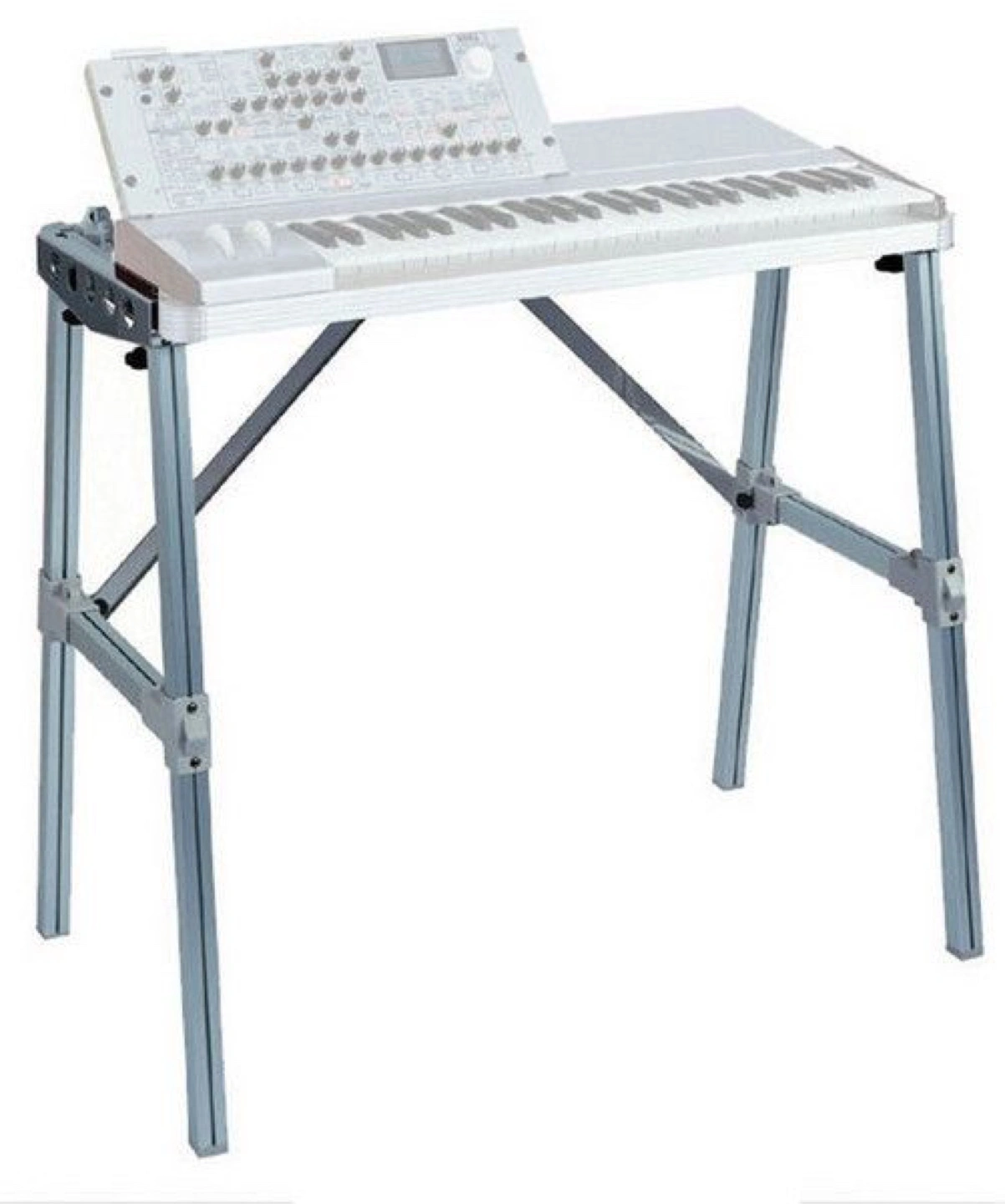 Lightweight, foldable keyboard stand. Durable aluminum construction. Easy setup and transport. Suitable for various keyboard sizes.