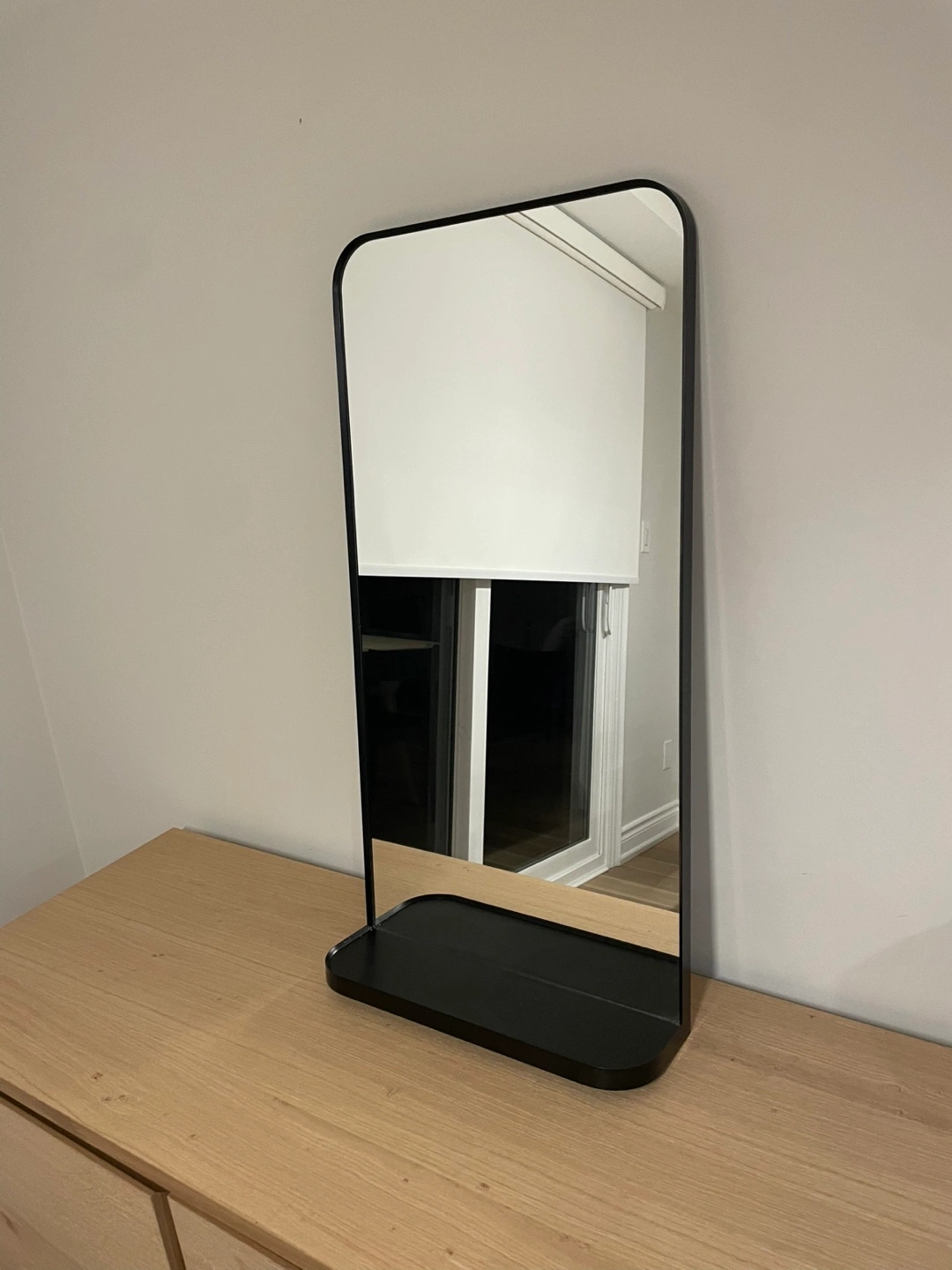 Black metal frame. Small shelf at the bottom. Perfect condition. Minimalist design. Perfect for bedroom or entryway.