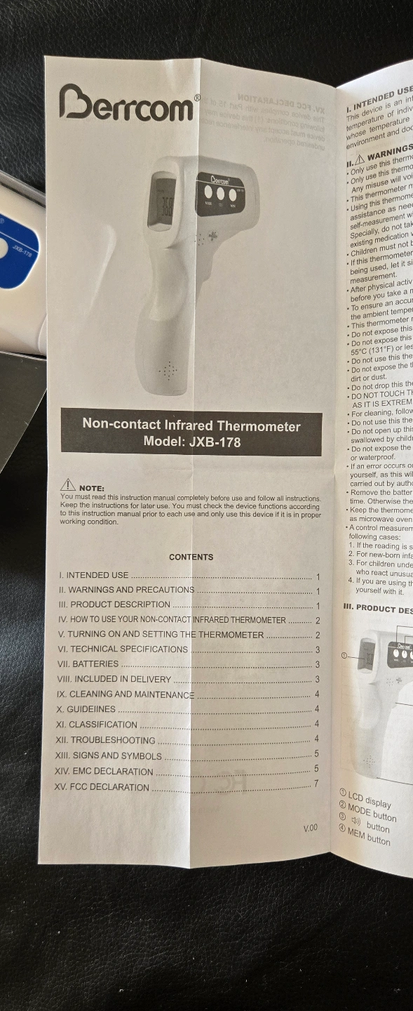 BRAND NEW NEVER USED - Only removed from box to take pictures for this ad. Currently available on Manufacturer's website for $19.99, selling here for only $10 (NO TAX/NO TARIFFS 😊😊😊) https://www.berrcomonline.com/products/forehead-thermometer-jxb-178