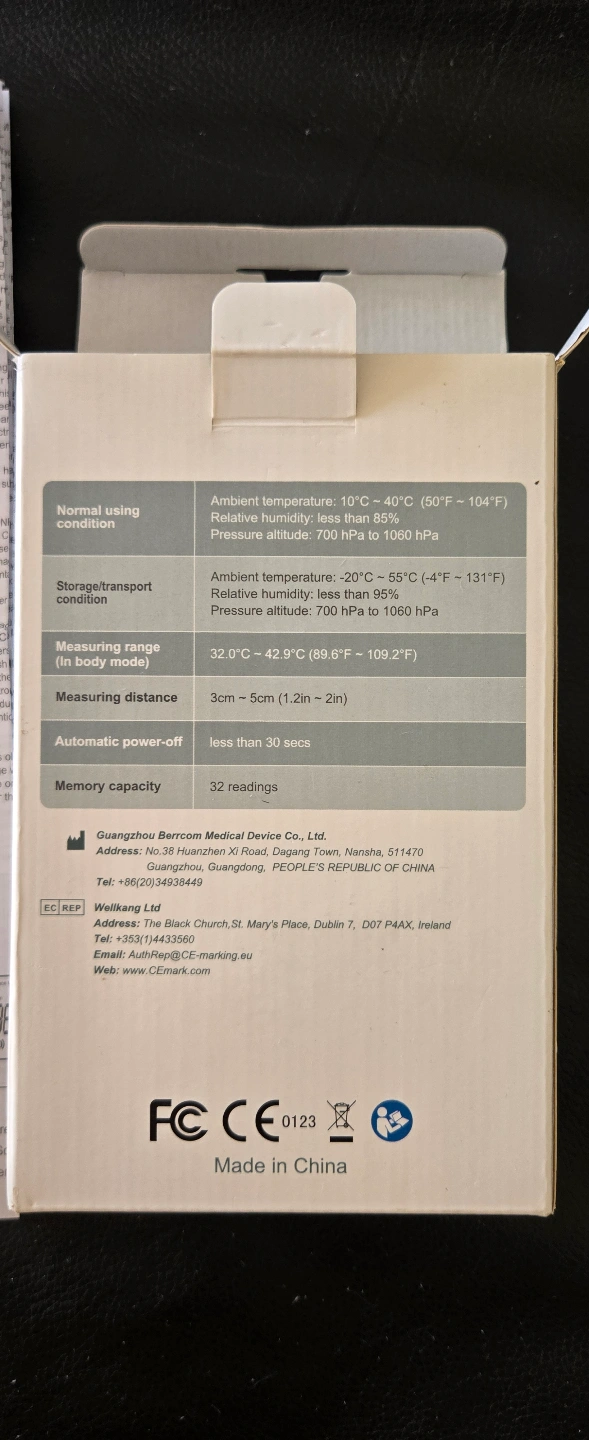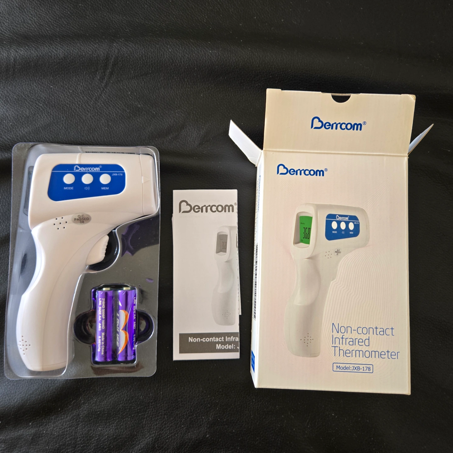 BRAND NEW NEVER USED - Only removed from box to take pictures for this ad. Currently available on Manufacturer's website for $19.99, selling here for only $10 (NO TAX/NO TARIFFS 😊😊😊) https://www.berrcomonline.com/products/forehead-thermometer-jxb-178