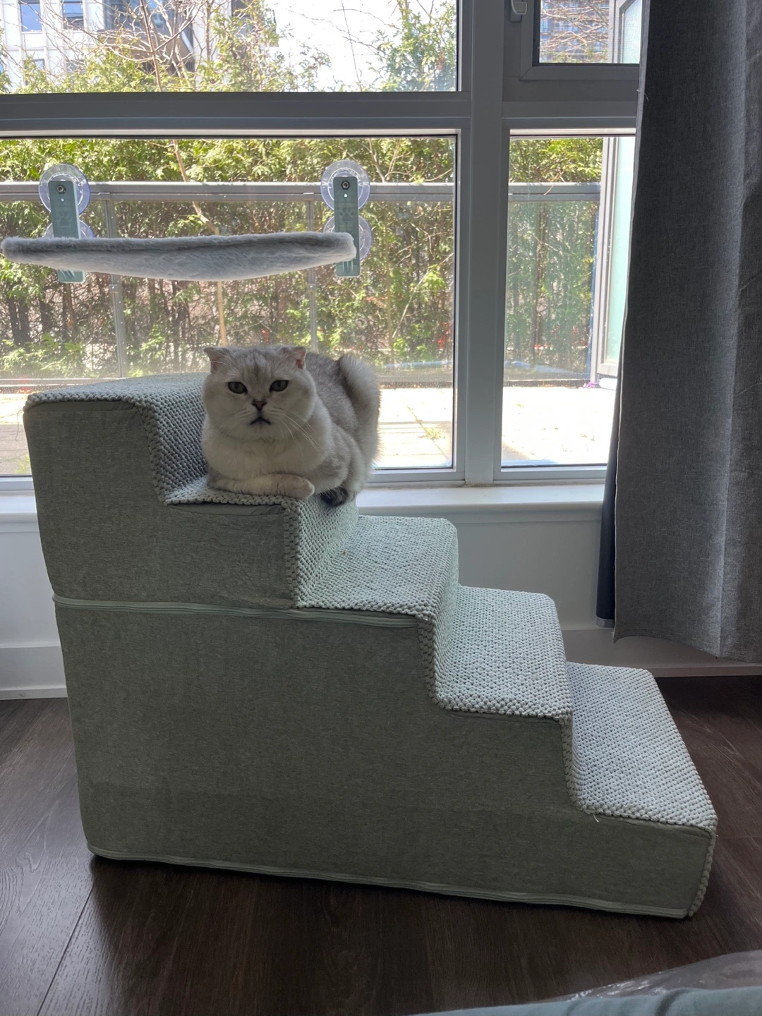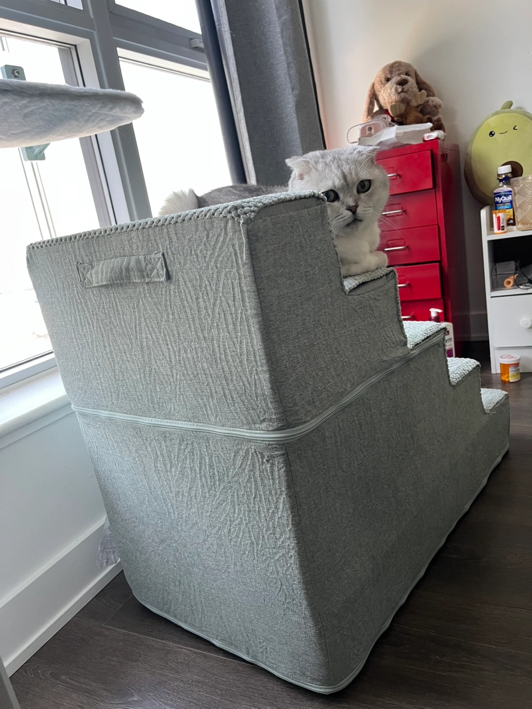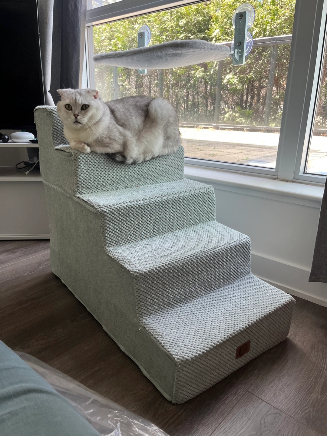 Barely used, dog won’t use. Folds into a bed as well. Good for high bed or couches! 22.5" H, 5-Step Pet Stairs
