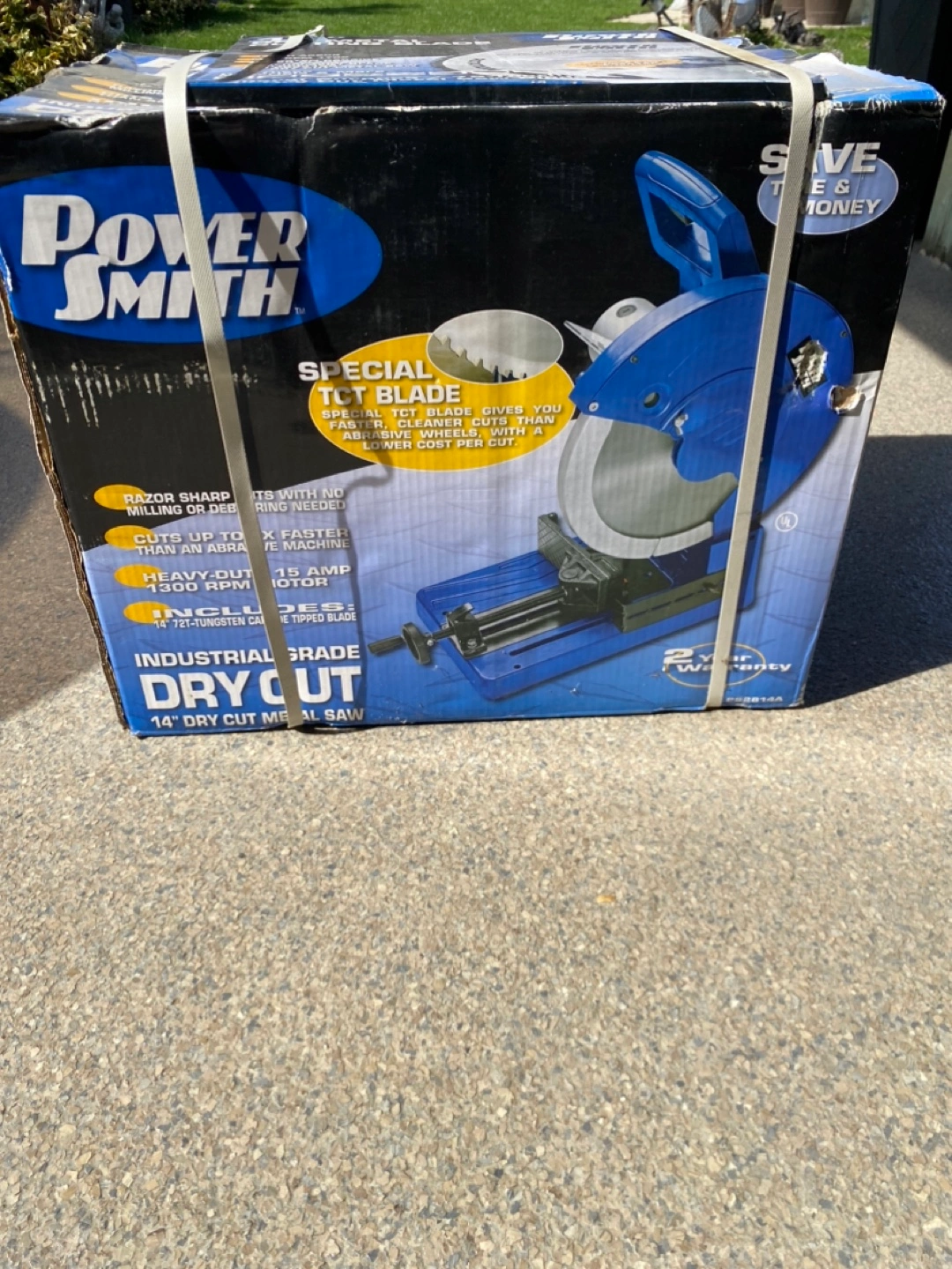6014-inch dry cut metal saw. Industrial grade. Heavy-duty. Includes TCT blade. Razor sharp. Cuts up to 2-inch square tubing. 1300 RPM. 15 amp. 416-830-6400