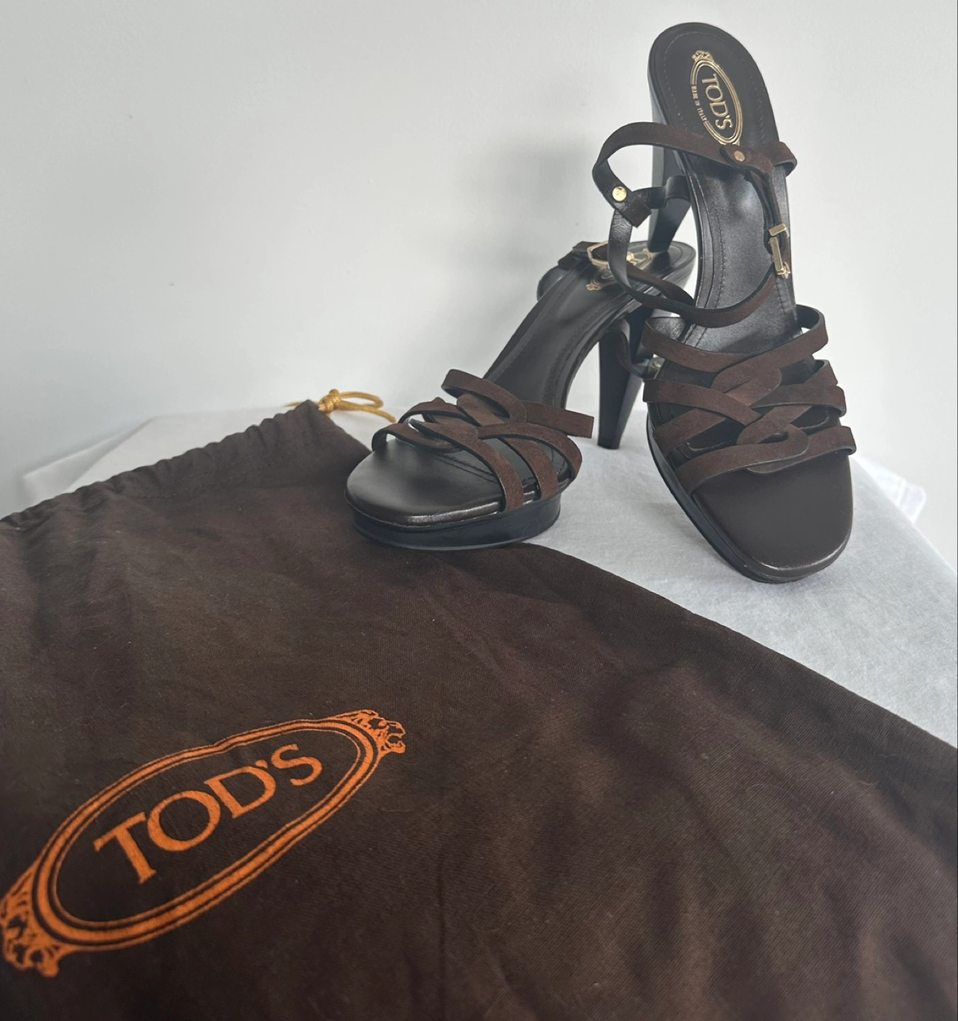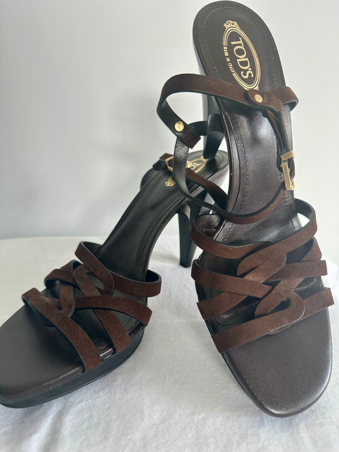 TOD'S Suede Heeled Sandals - Sz 8.5